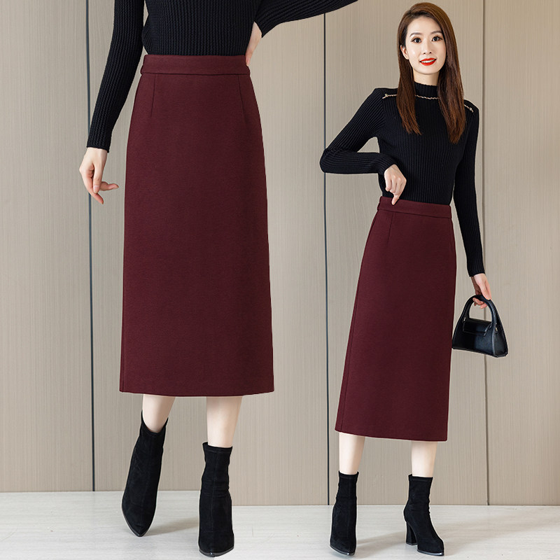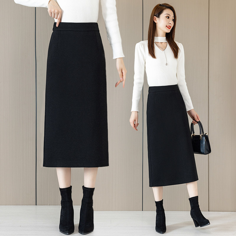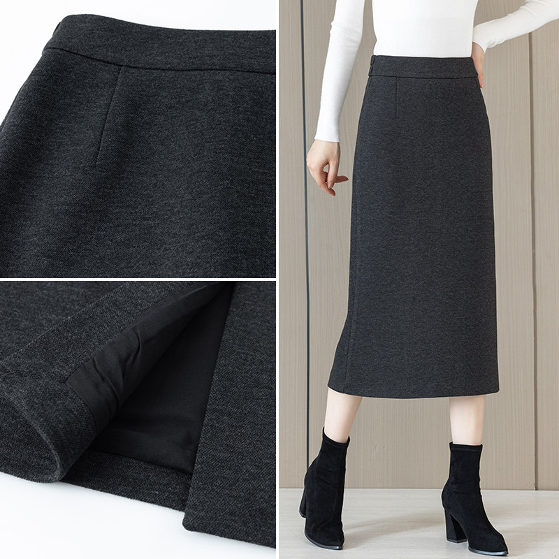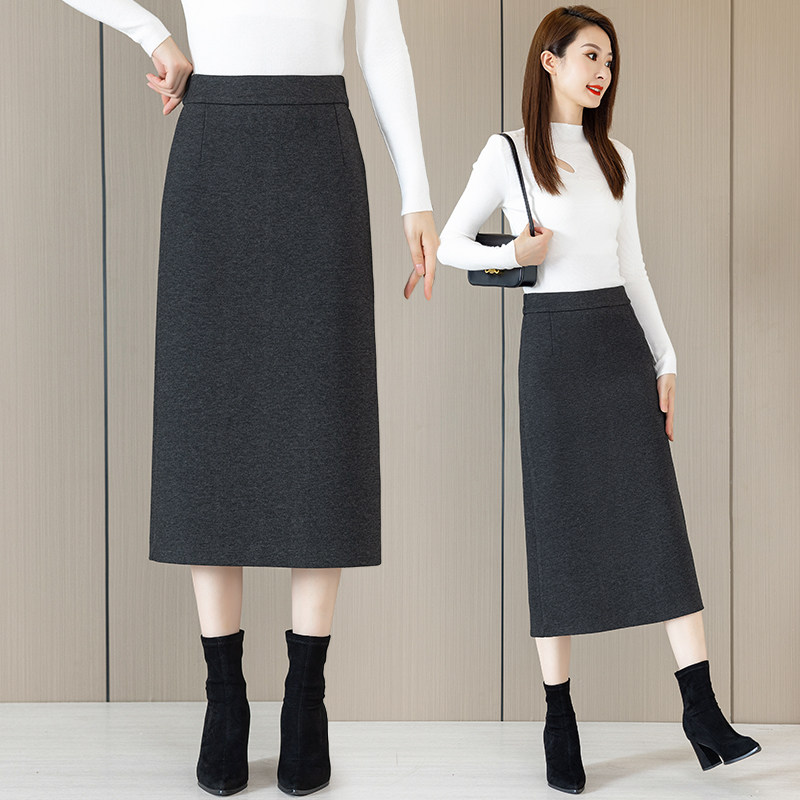 醋酸羊毛呢半身裙女秋冬2025新款松紧腰显瘦中长款直筒开叉一步裙