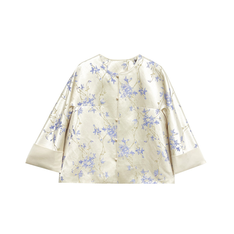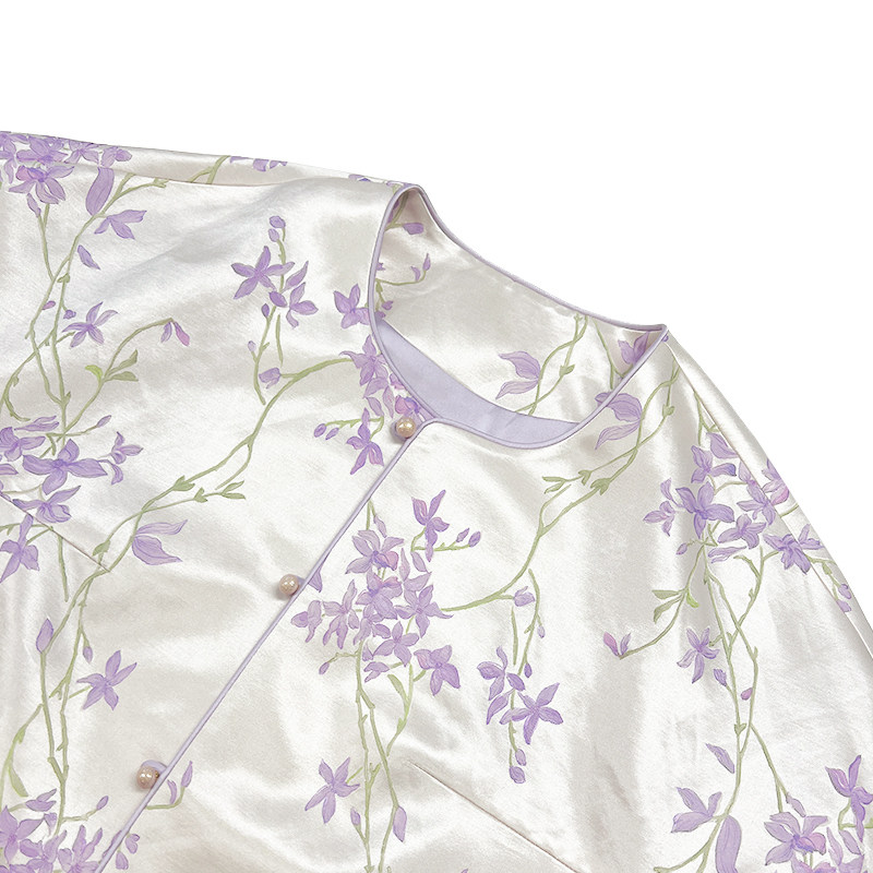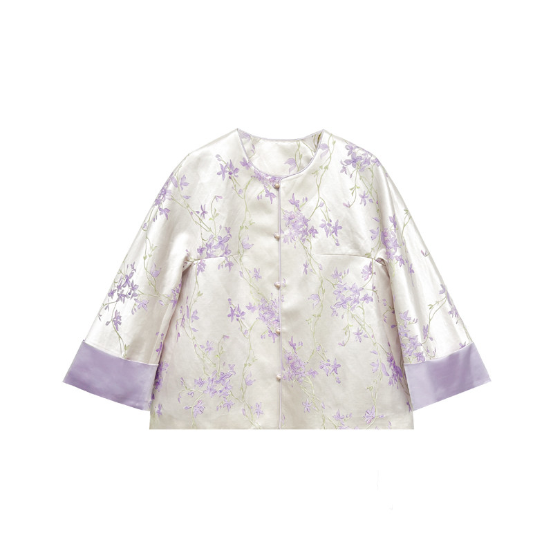【橙庐】443003原创新中式藤蔓紫娇提花丝麻棉外套 春秋女中国风