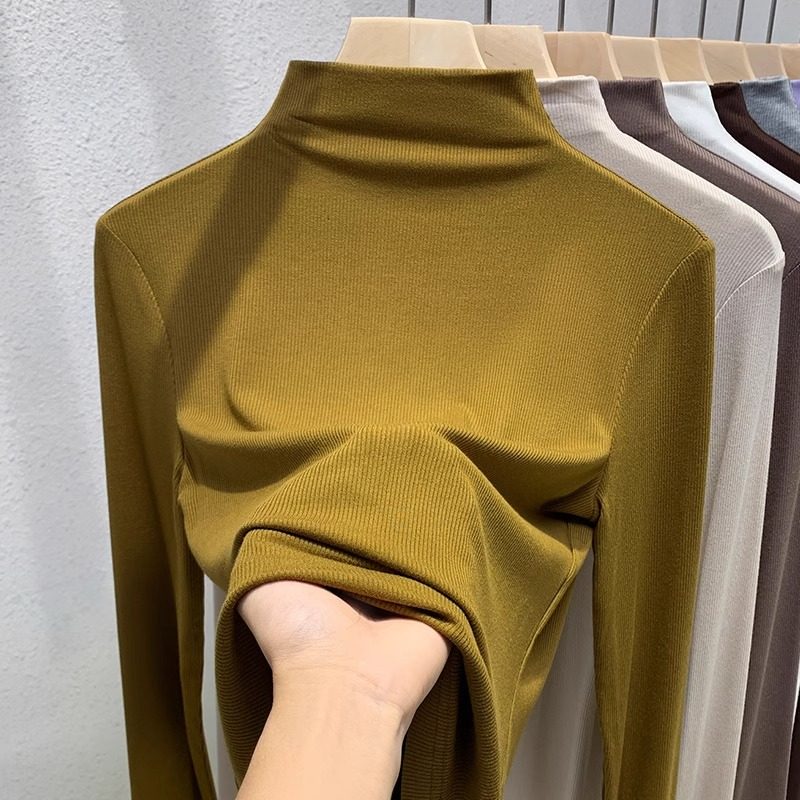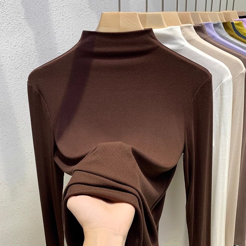 2025秋冬新款螺纹莫代尔棉半高领打底衫女内搭面膜长袖T恤上衣服