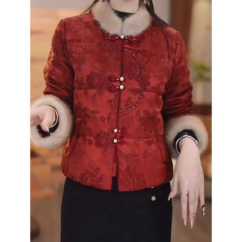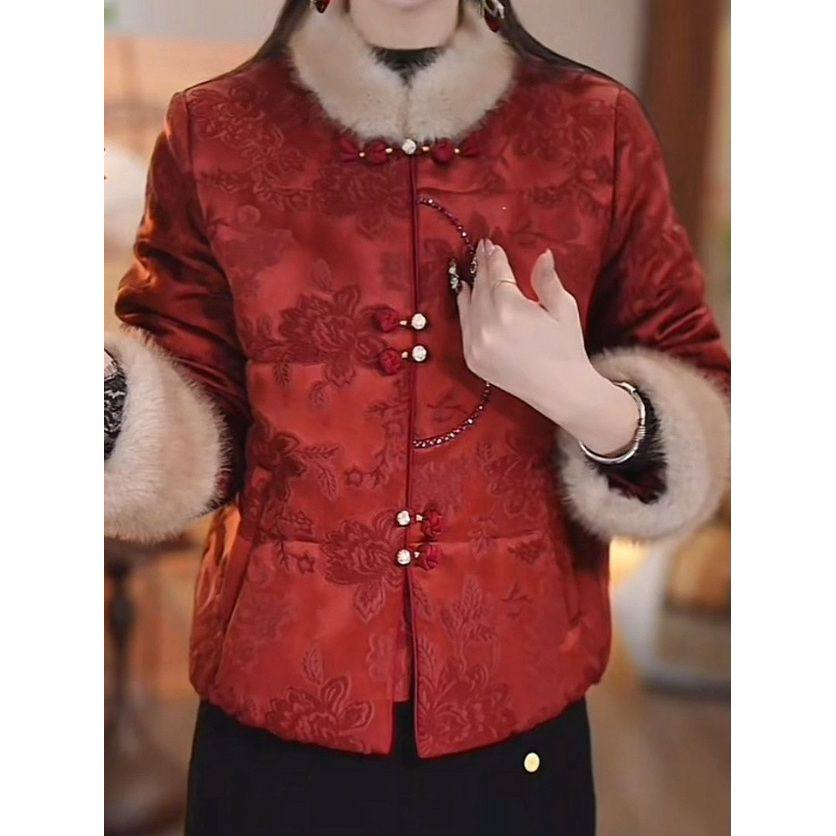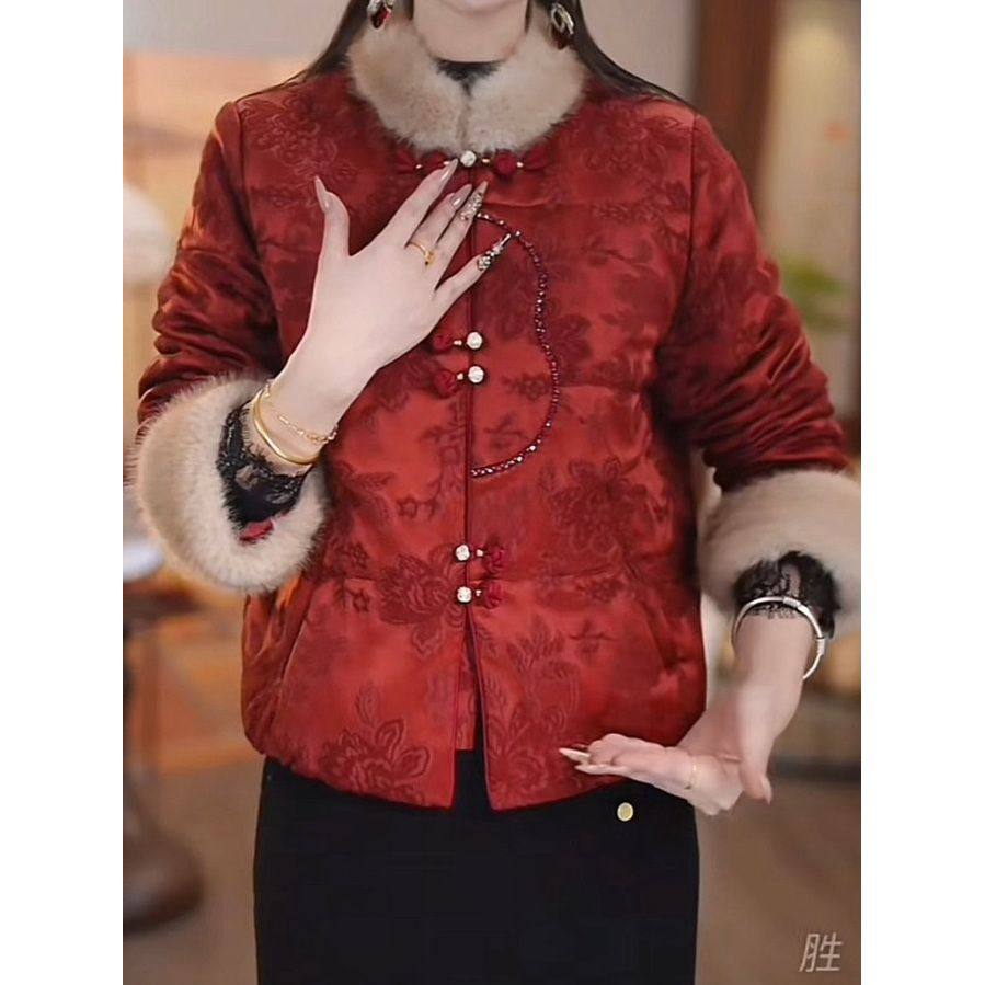 加厚夹棉新中式绫罗丝缎棉服外套2025冬新款时尚气质显瘦百搭外套