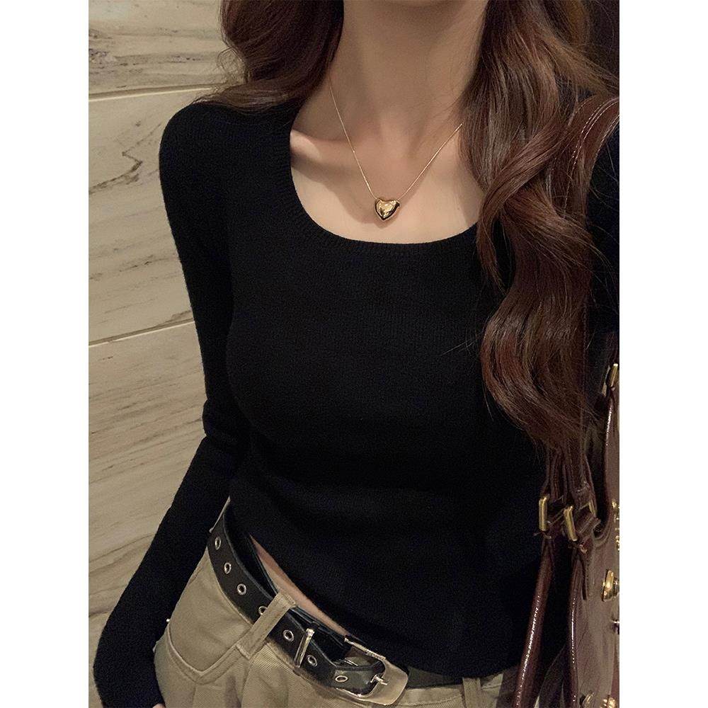 2025春秋新款方领针织衫女绝美别致设计感松弛套手指灰色长袖t恤