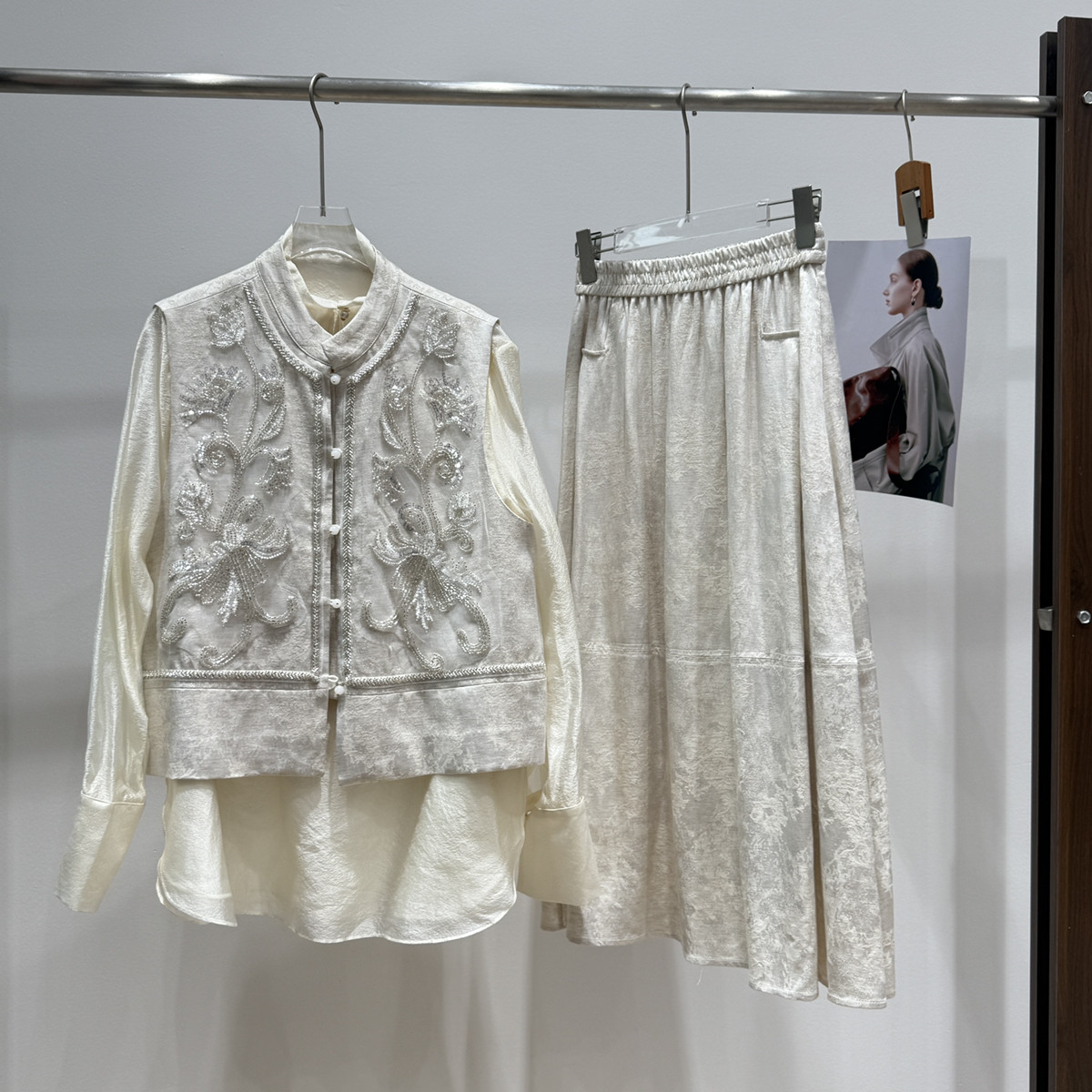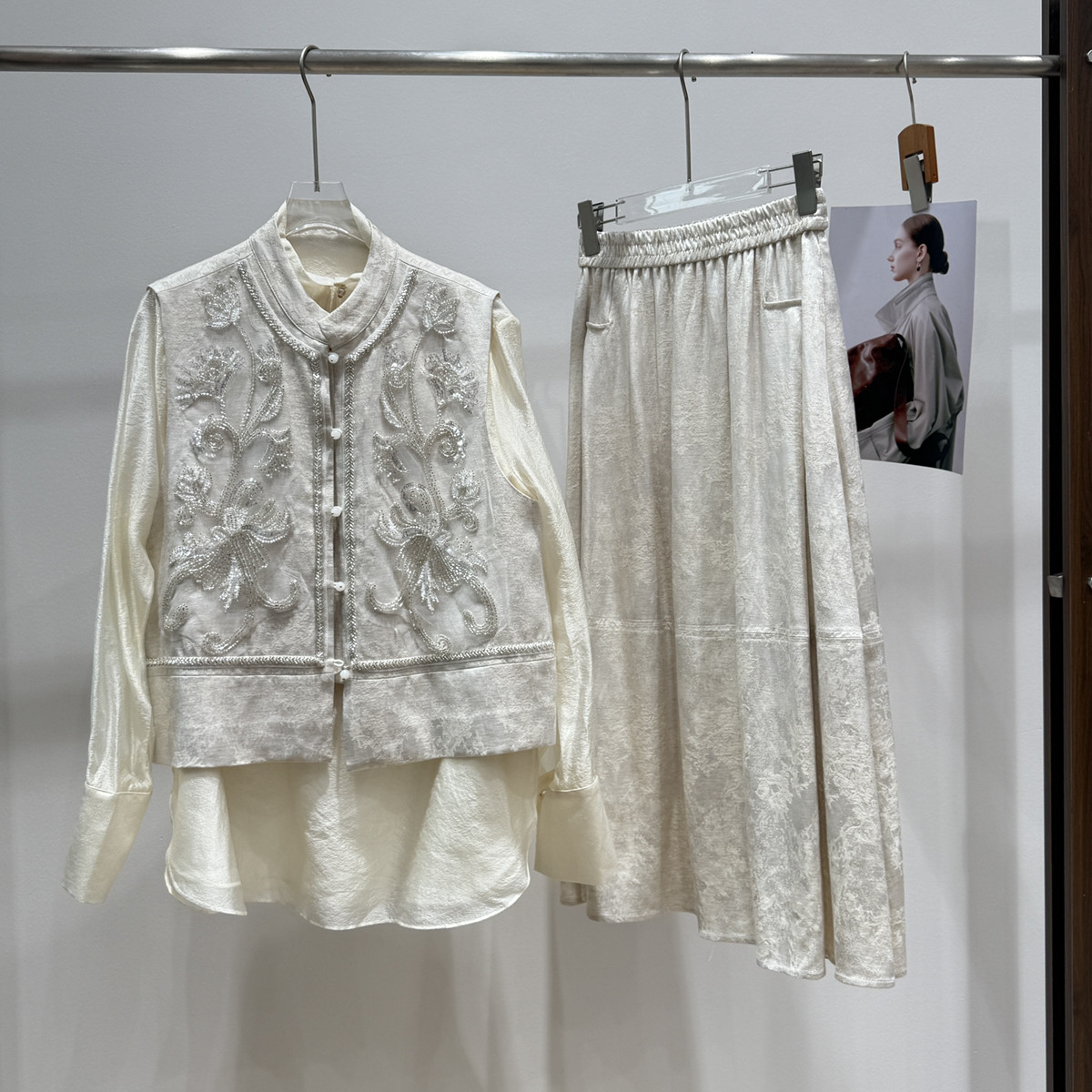 26年早春!重磅人丝亚麻提花重工刺绣马甲+遮肉伞裙半身裙套装