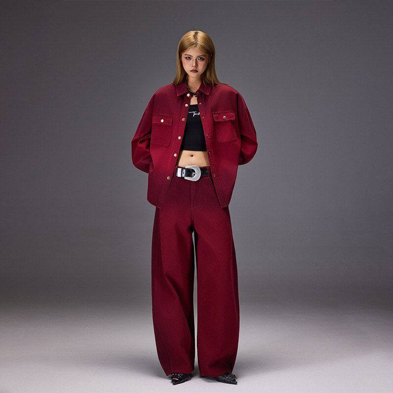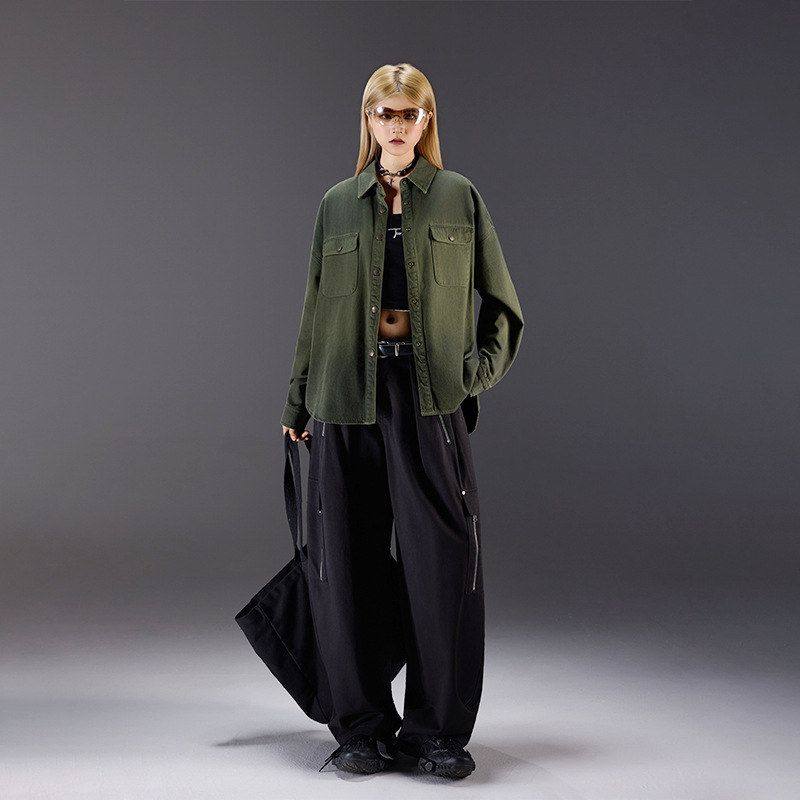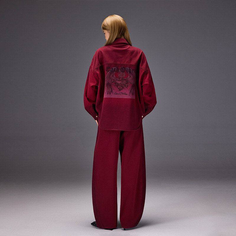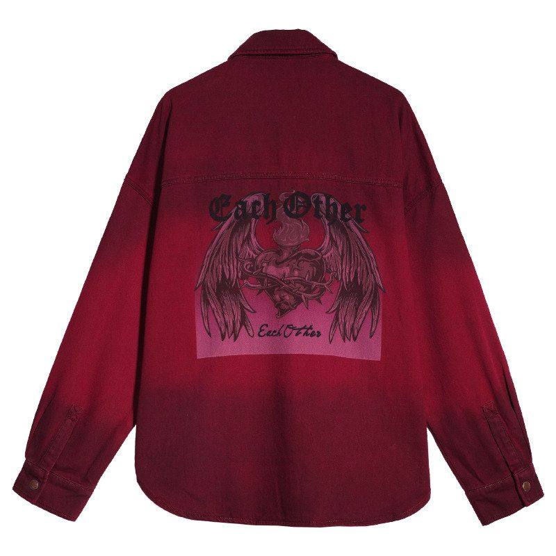 春秋女印花宽松美式潮牌渐变色外套长袖高街衬衫百搭衬衣拓谷新款