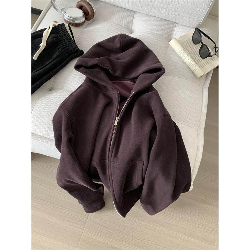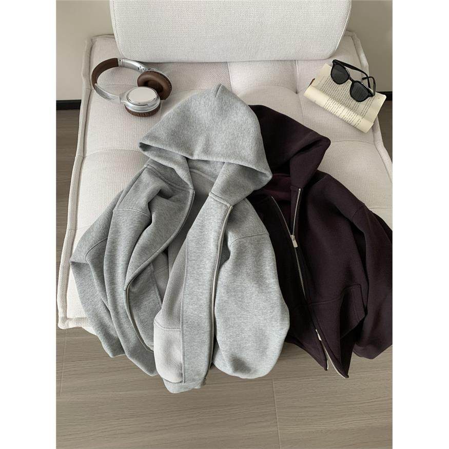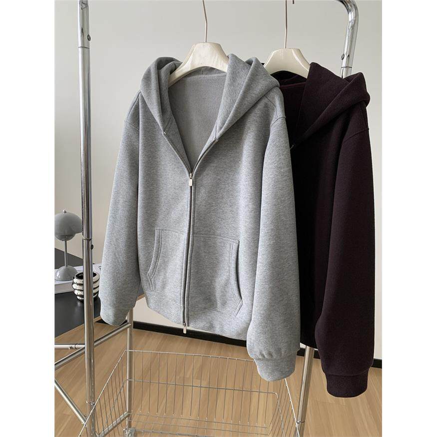 460g重磅摇粒绒卫衣外套女慵懒韩系大版连帽拉炼开衫冬季加绒外套
