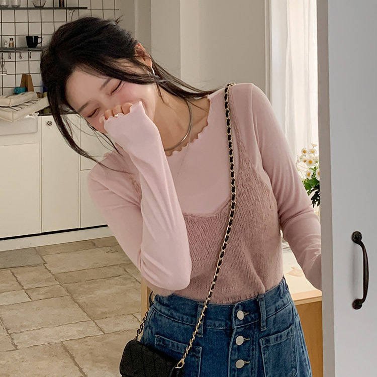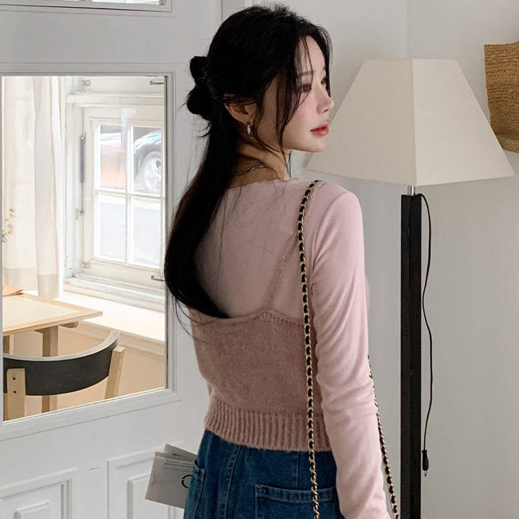 时尚起义韩国代购潮范2026春羊毛混纺叠穿吊带针织背心dp26012202