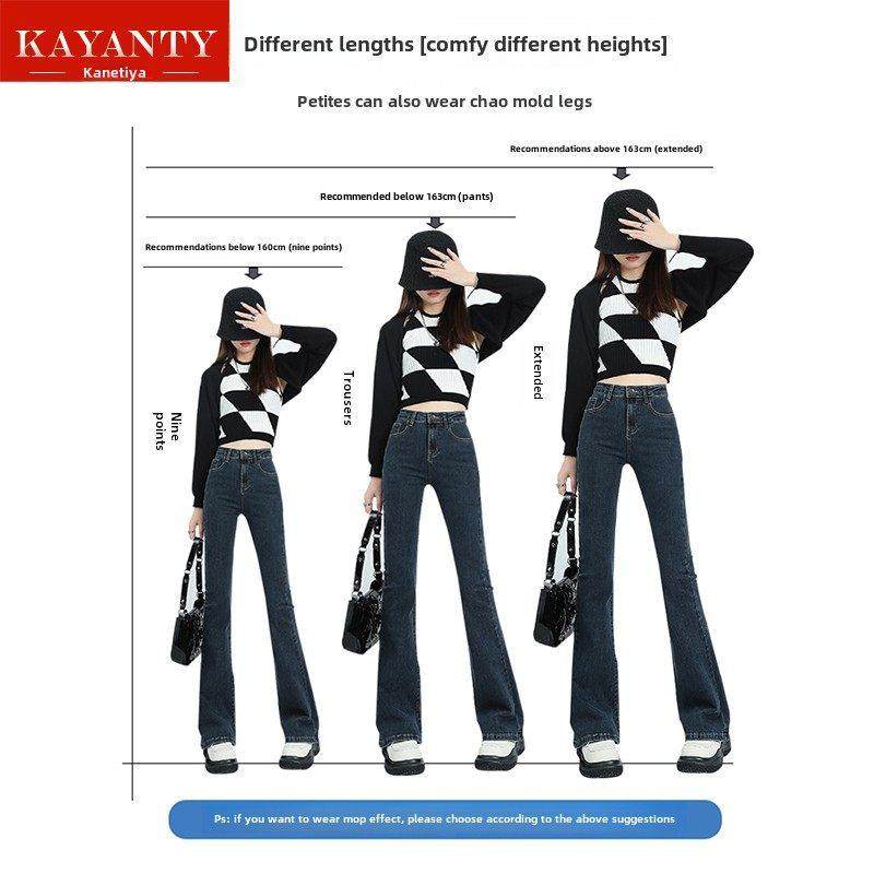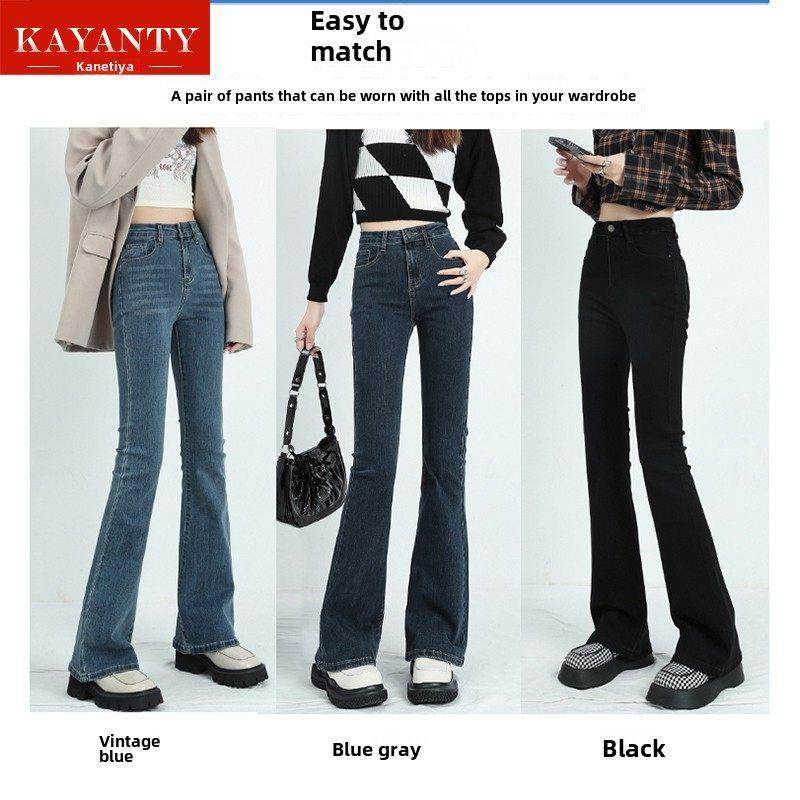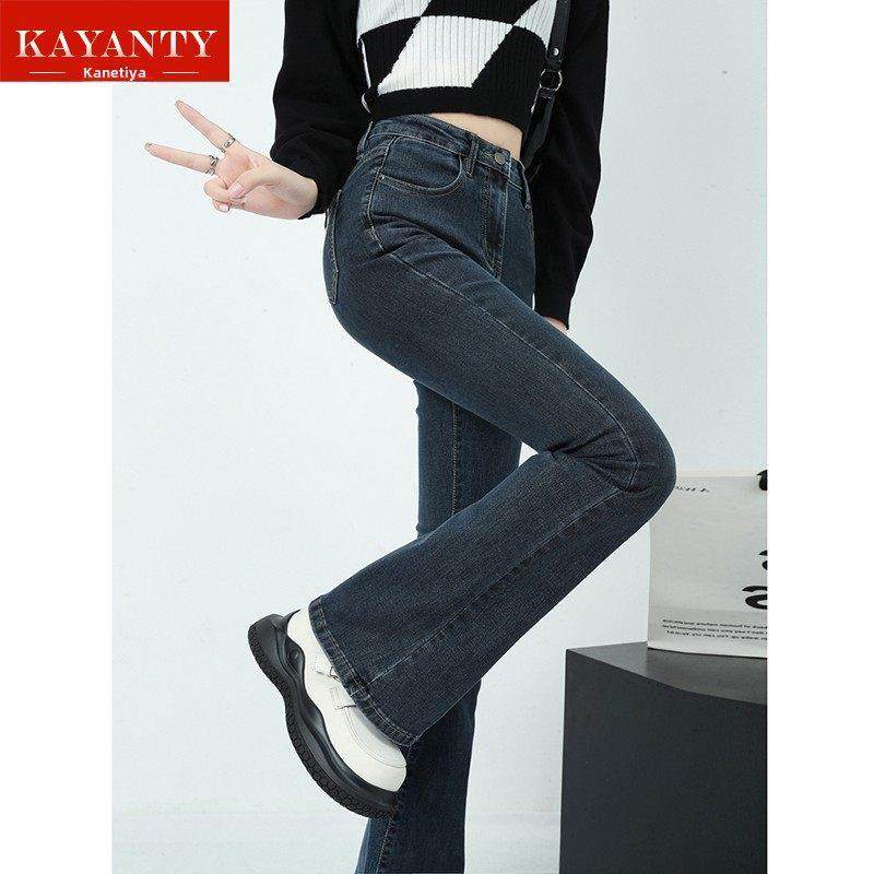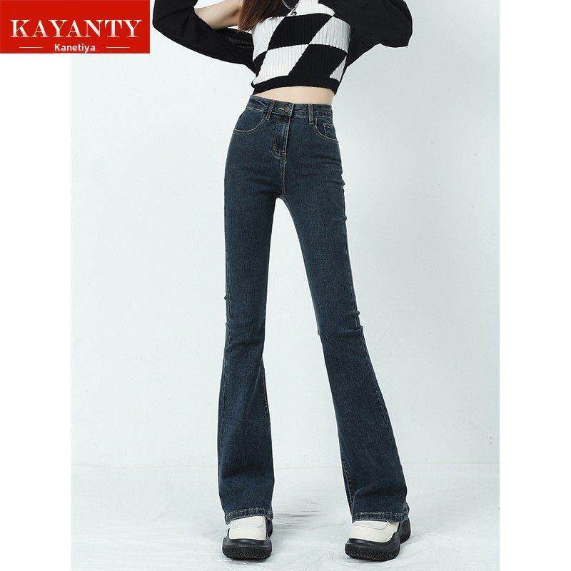 KAYANTY牛仔裤女秋新款爆款马蹄裤高腰显瘦美式弹力紧身微喇叭裤