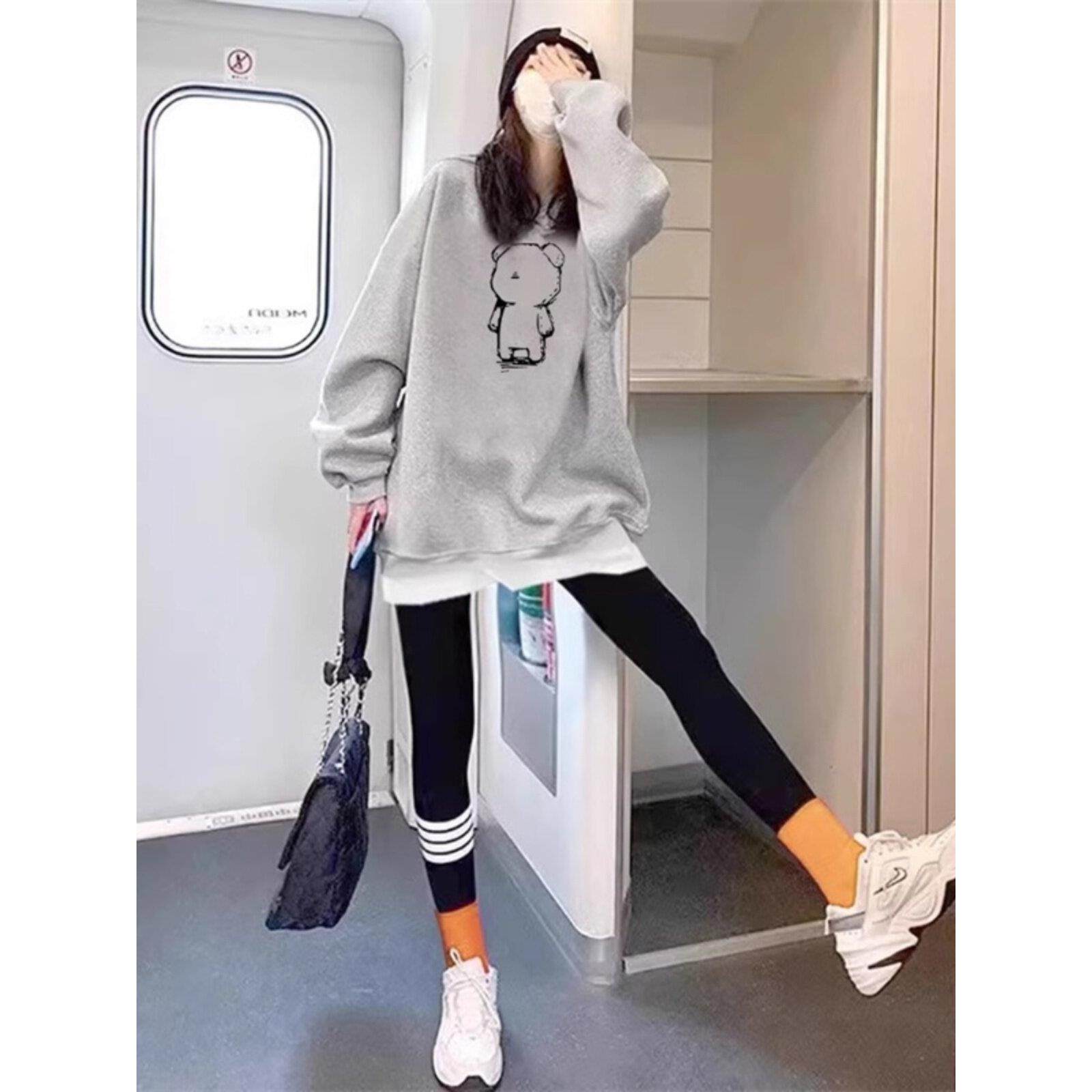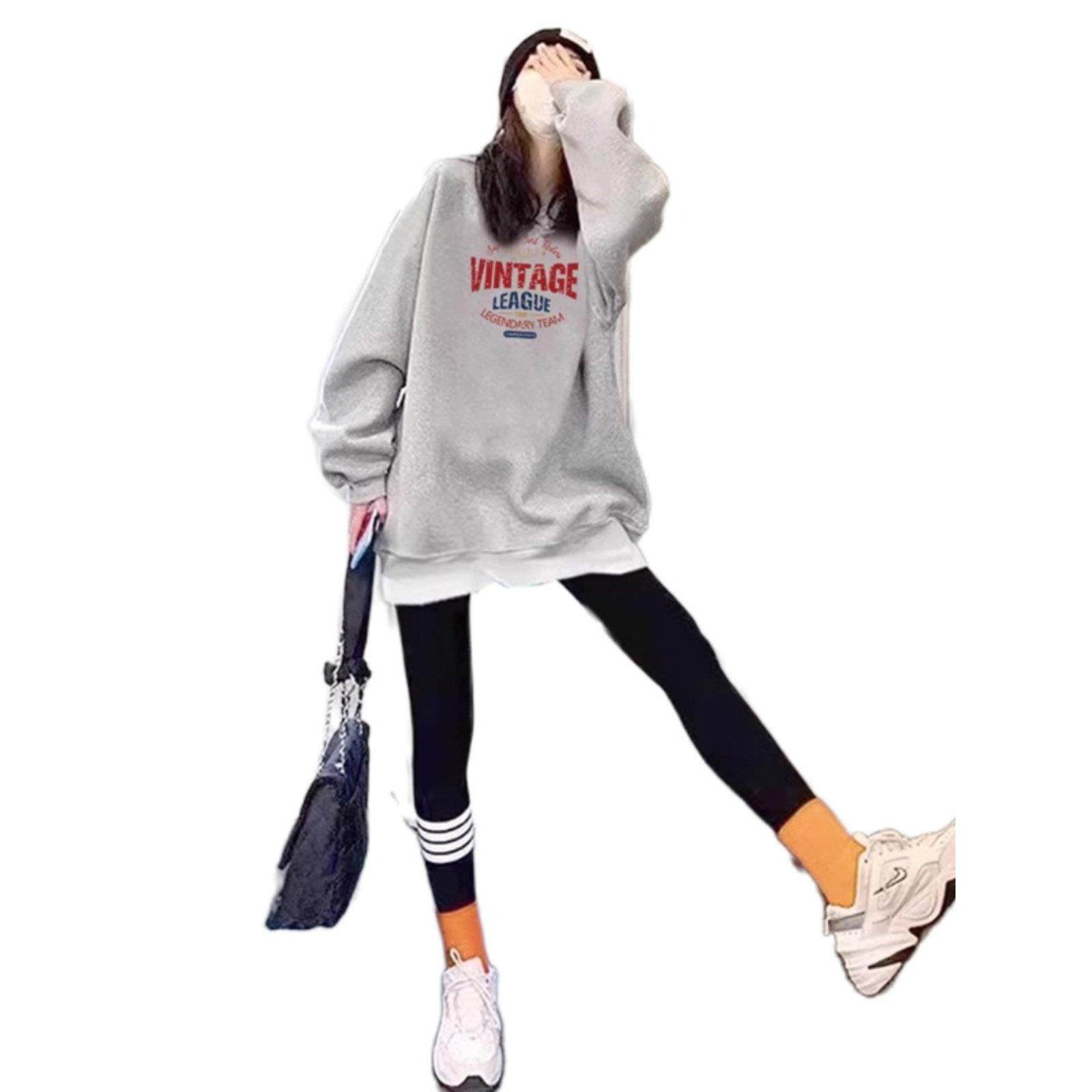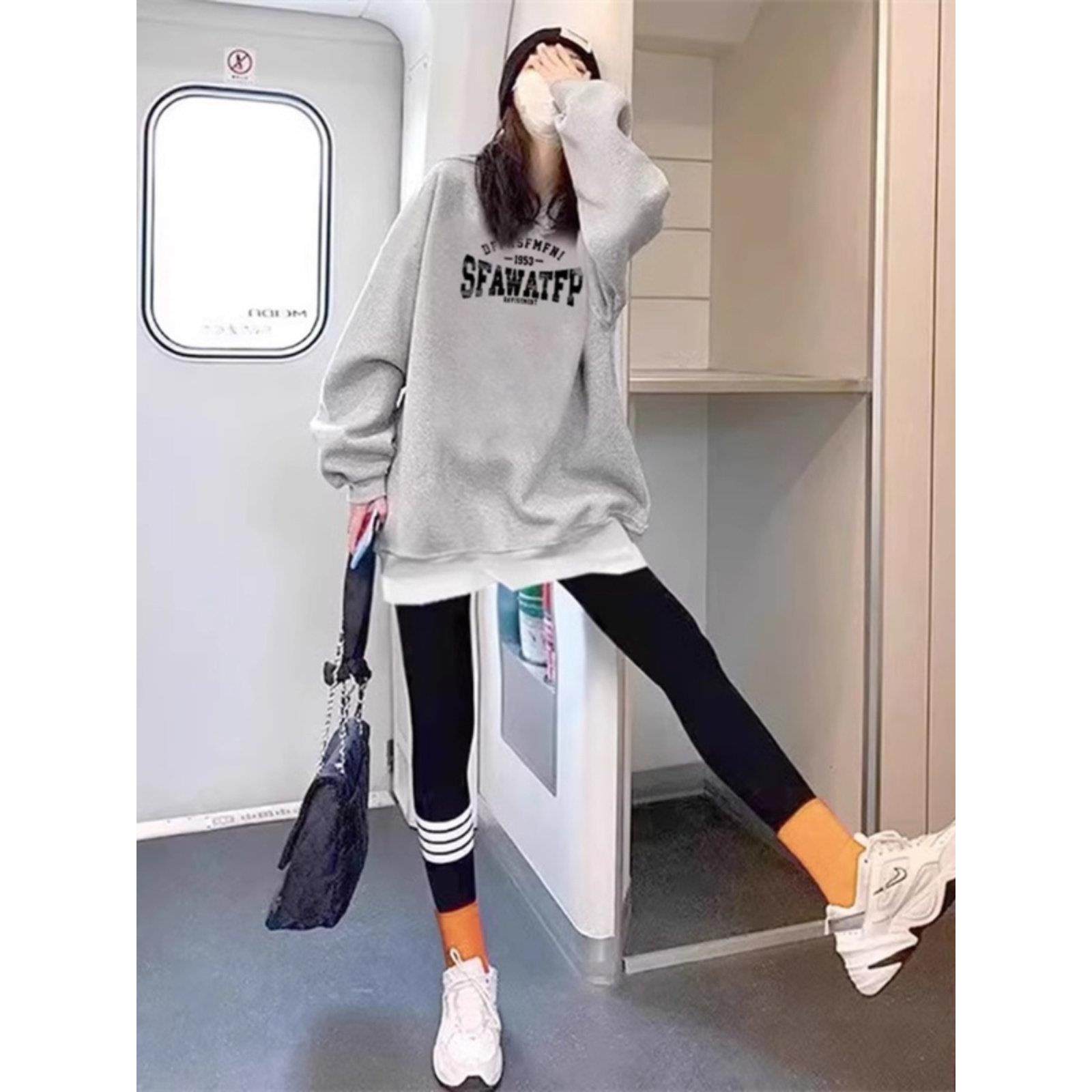 假两件加绒卫衣女2025秋季新款中长款加厚遮屁股搭配鲨鱼裤的上衣