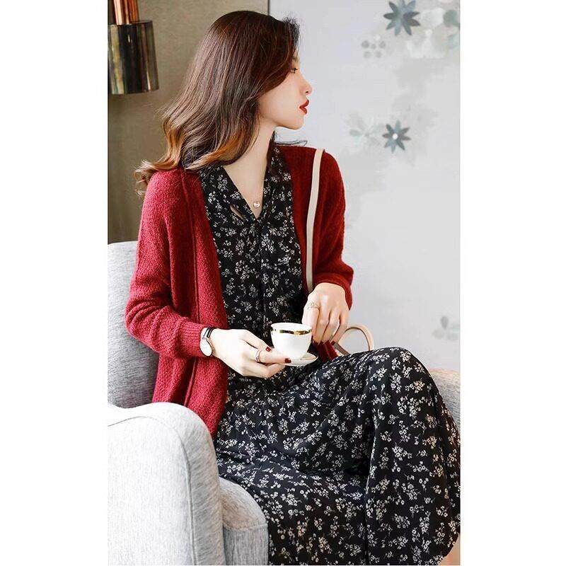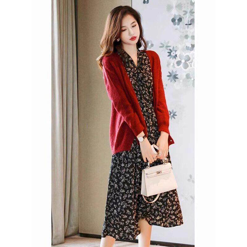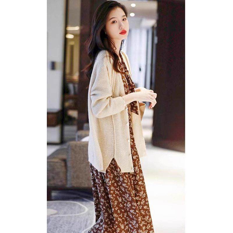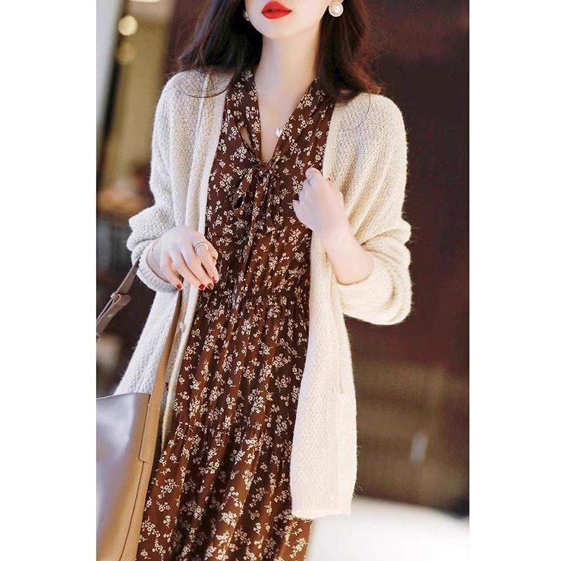 首页> 女装> 欧洲站春装女款2025新款法式覆古长袖V领碎花洋装高级感a字裙子