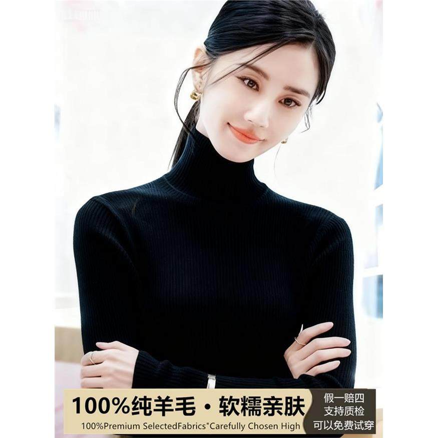 无缝一体羊毛衫女100纯羊毛打底衫半高领2025新款紧身黑色毛衣