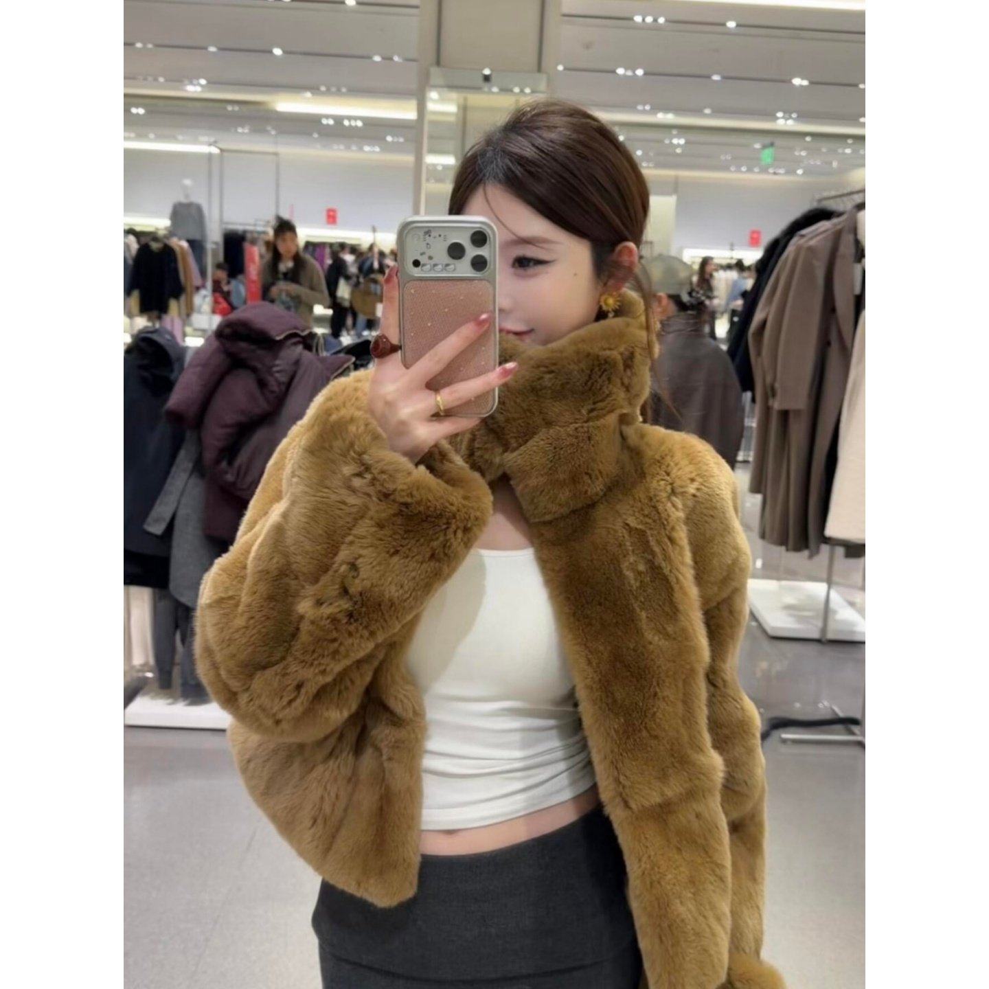 巨好看2026穿搭一整套翻领毛绒绒保暖开衫外套高腰显瘦百搭半身裙