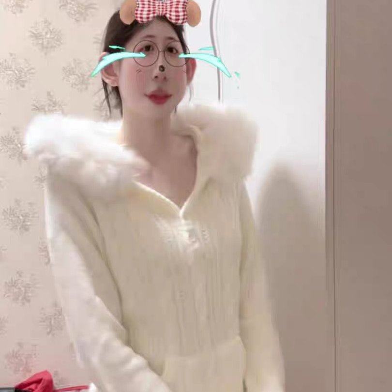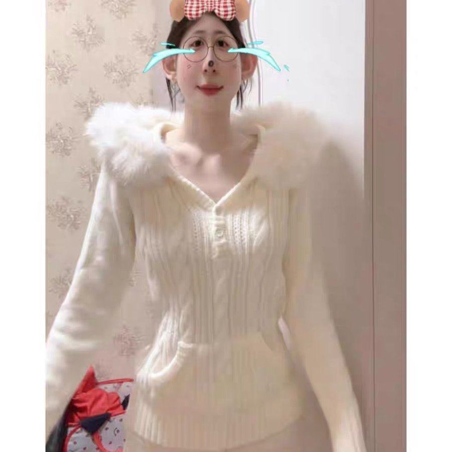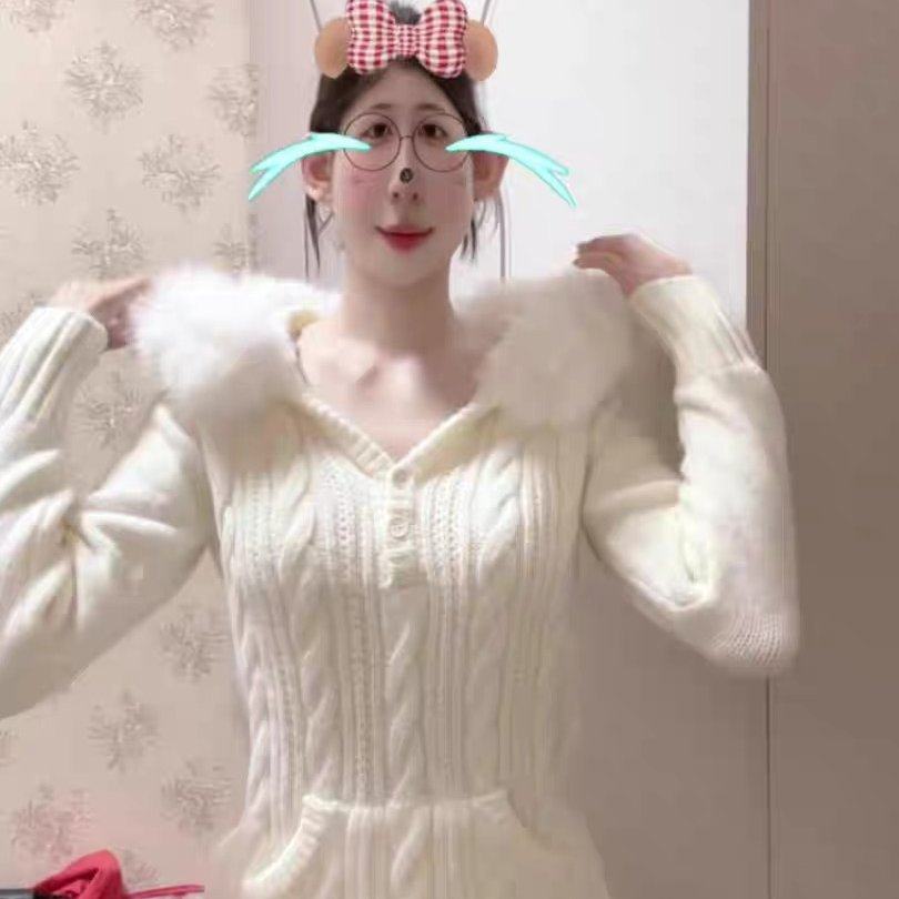 2025秋冬季新款韩系氛围感显瘦百搭甜美毛领针织上衣修身麻花毛衣