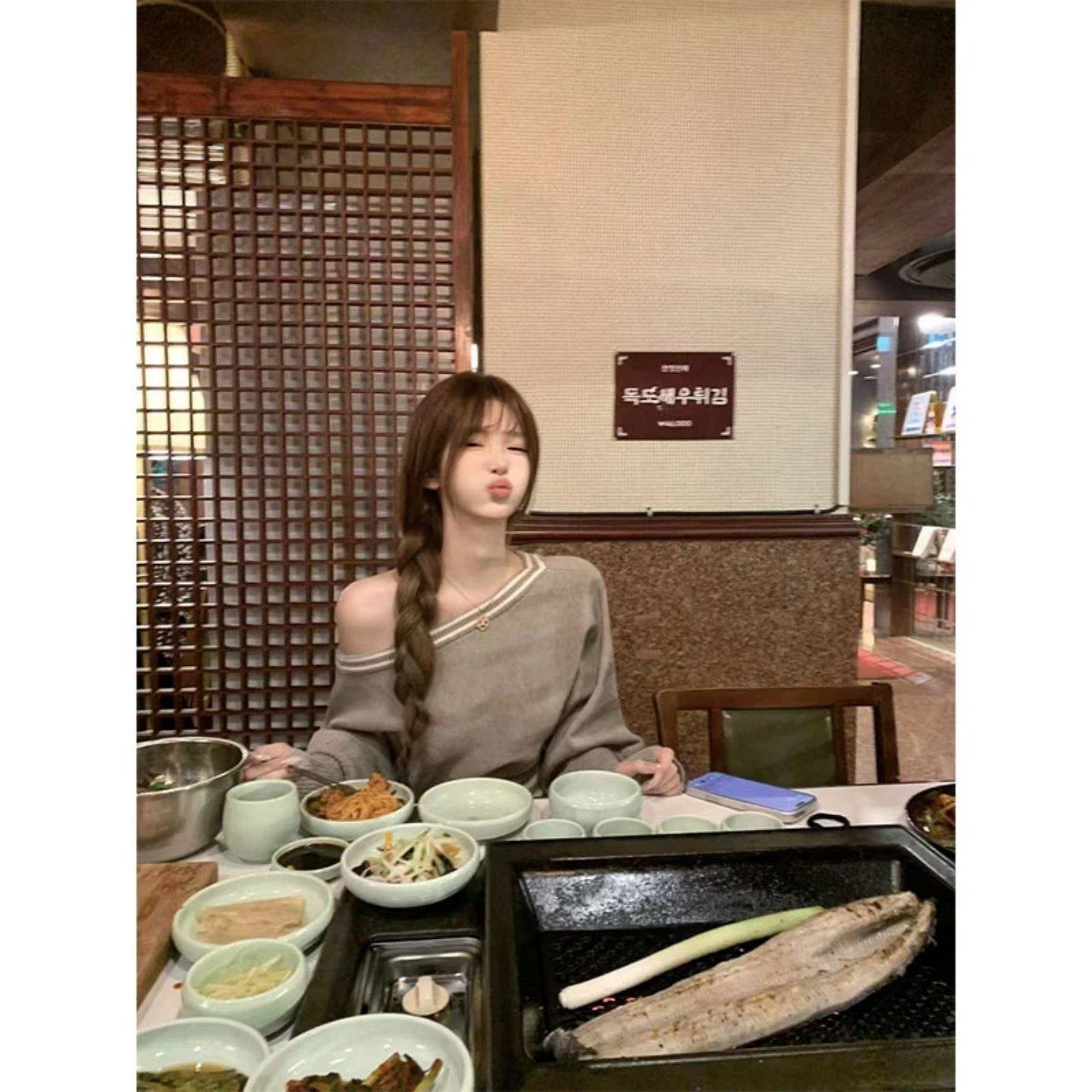 2026年超火冬装一整套韩系休闲百搭斜领针织衫毛衣显瘦宽松阔腿裤