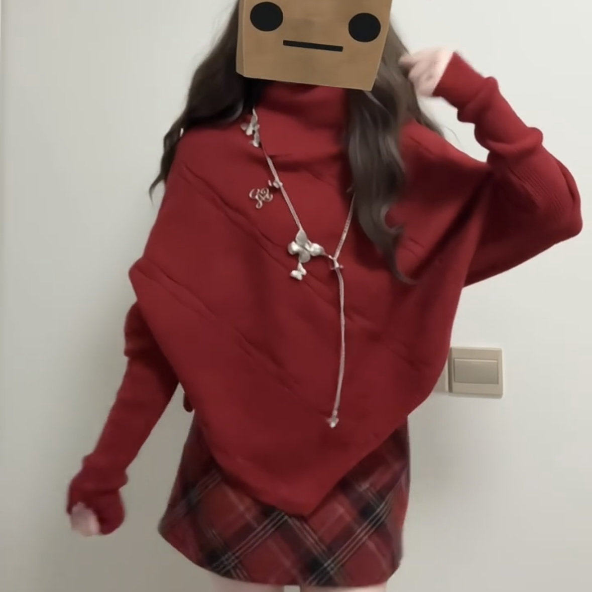 新年本命年红色半高领斗篷毛衣女秋冬季设计感慵懒加厚套头针织衫