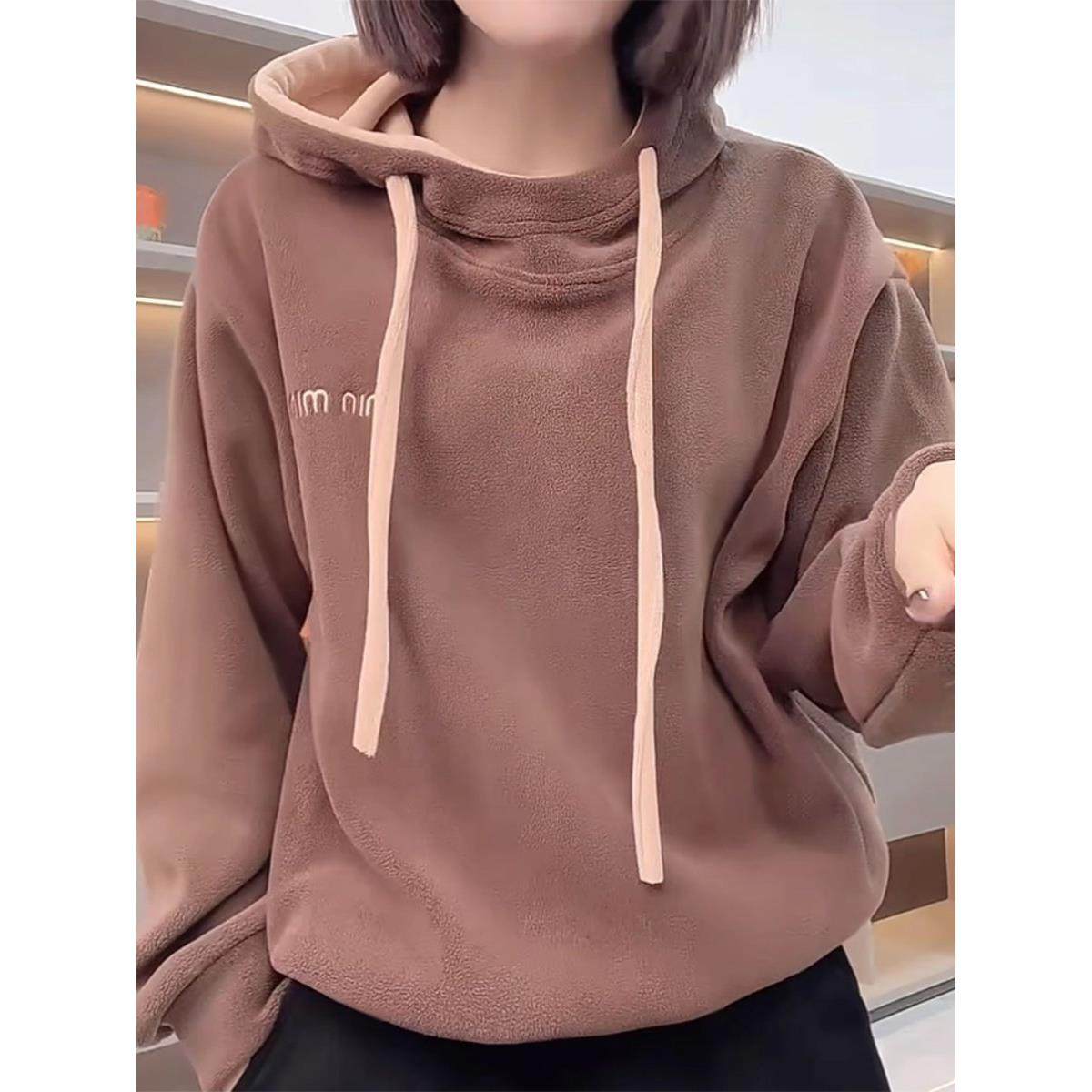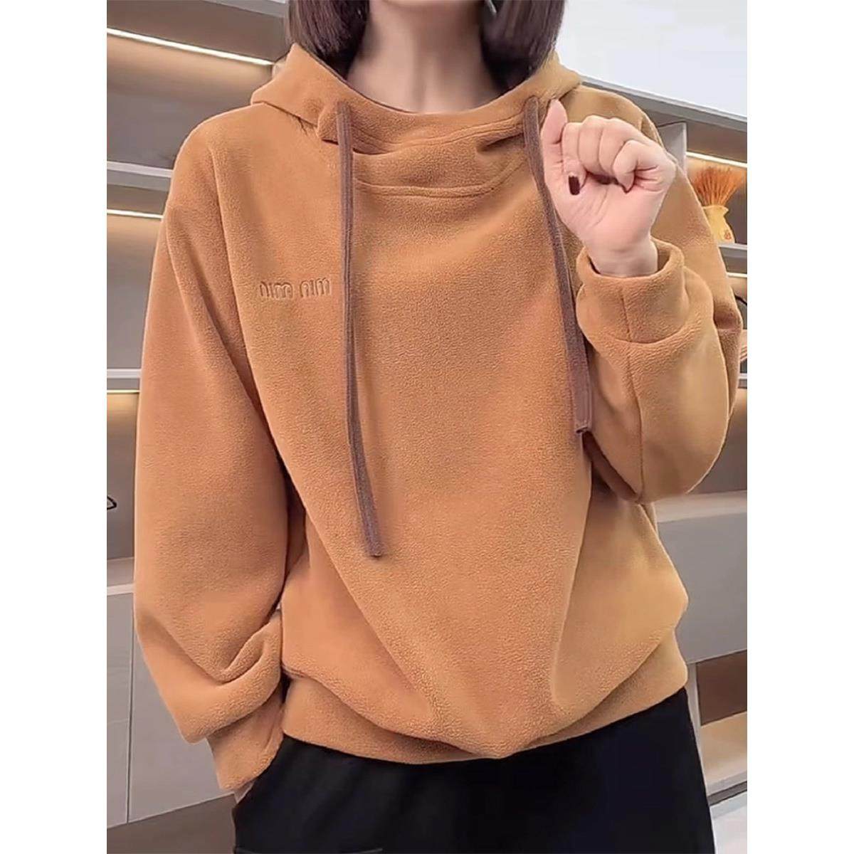 首页> 女装> 天鹅绒连帽运动衫妇女冬季2025新美拉德双面天鹅绒宽松暖套头夹克