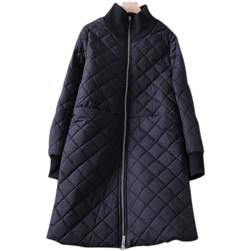 首页> 女装> 香港秋冬新款欧货菱格黑色棉衣外套女中长款显瘦休闲夹棉加厚大衣