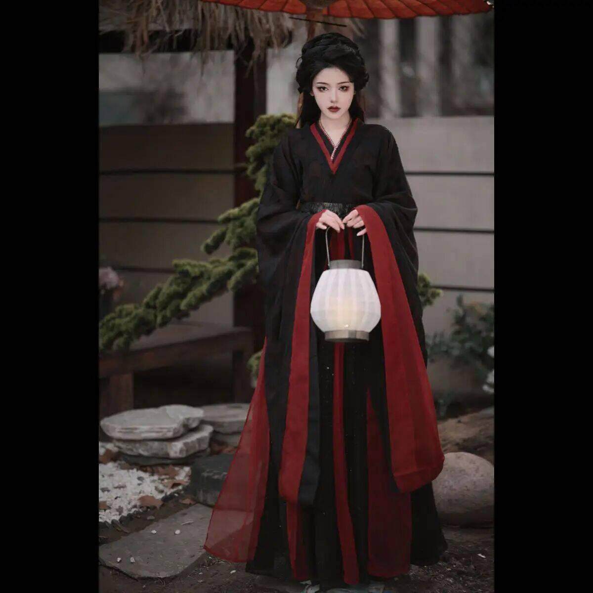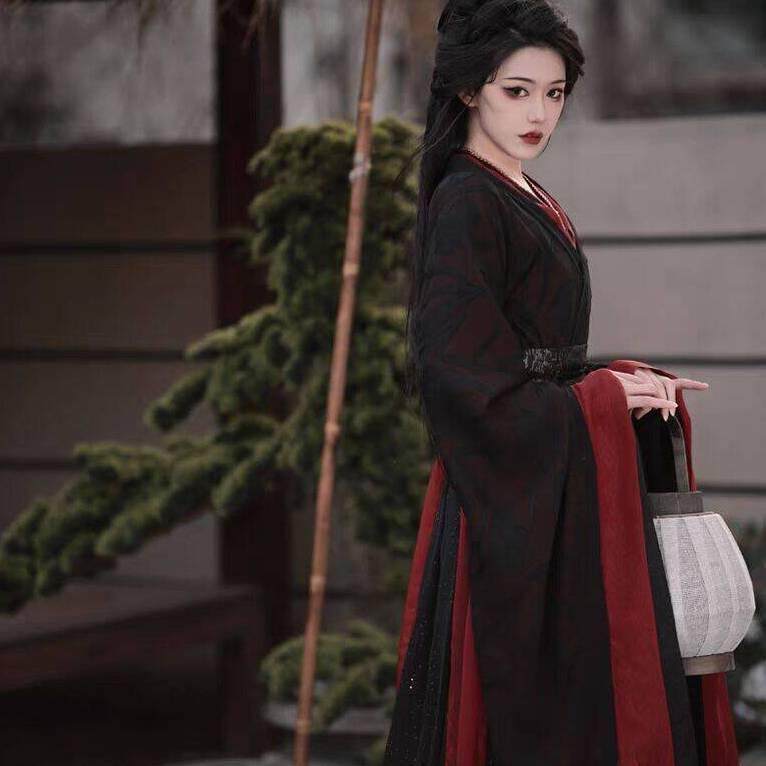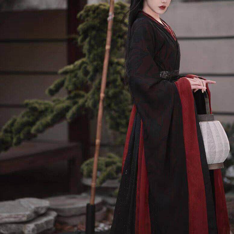 新款魏晋风战国袍黑色双层女南北朝楚墓复原古装汉服套装春夏秋冬