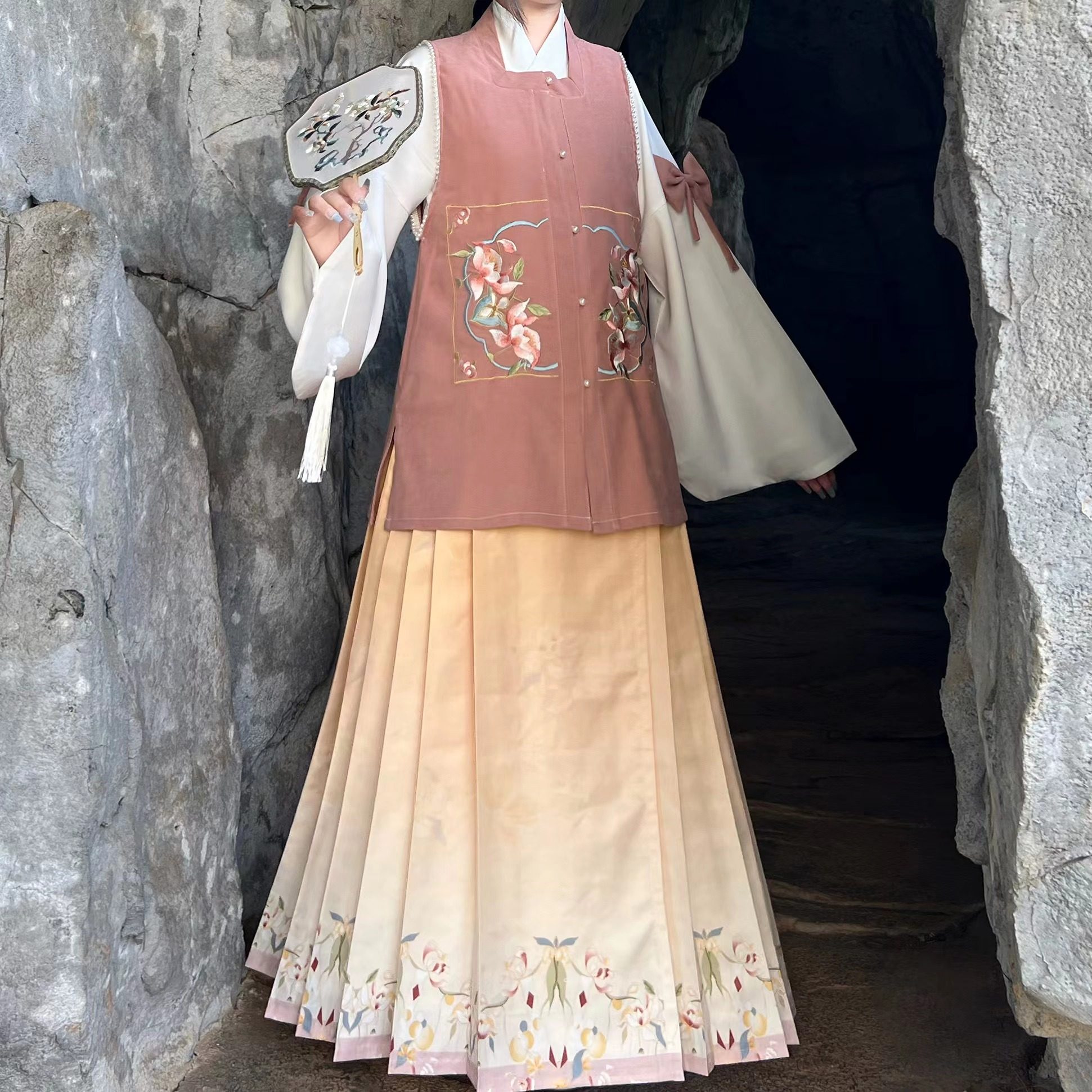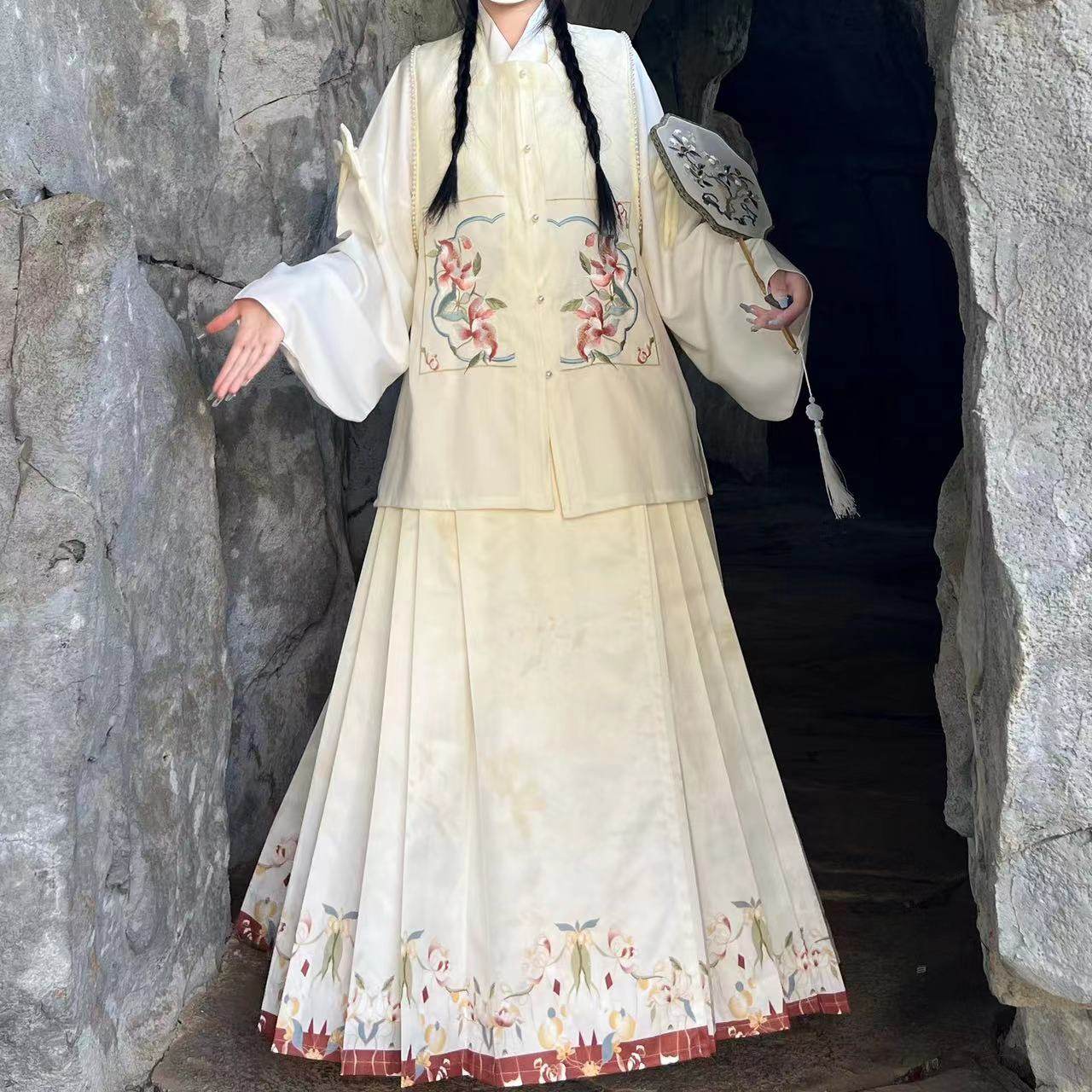 宫羽衣原创汉服女【花语】明制方领琵琶袖刺绣比甲马面裙秋冬套装