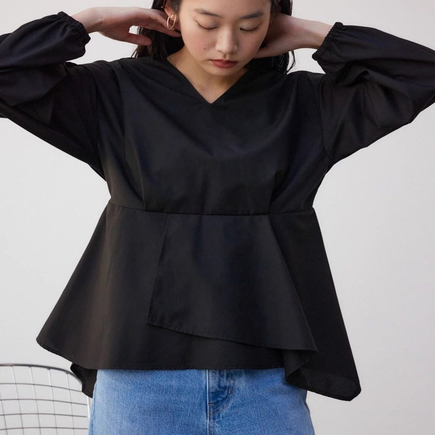 B05099日单新款后系带V领套头松紧腰不规则下摆女气质长袖衬衫