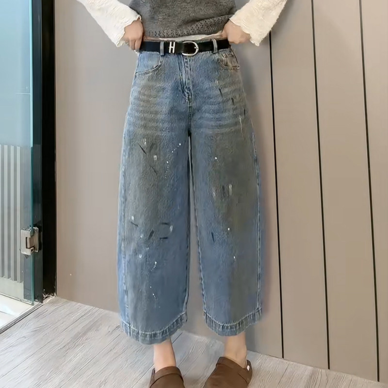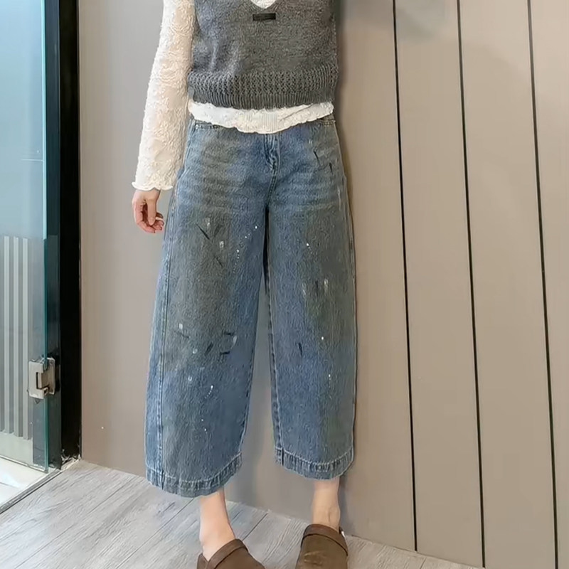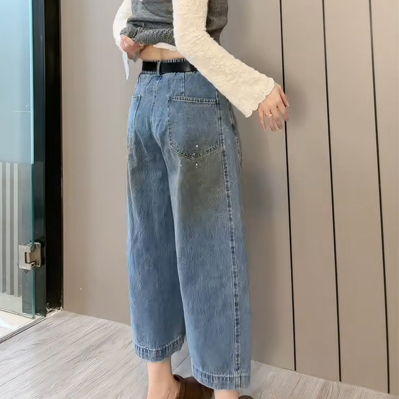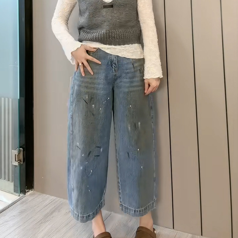 欧货时尚蕾丝打底衫针织吊带两件套春高腰甩漆显瘦九分阔腿牛仔裤