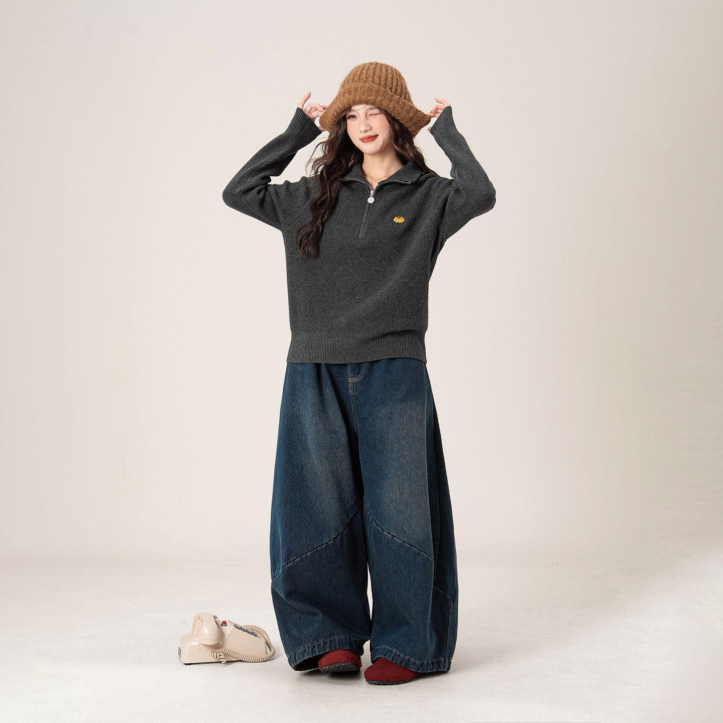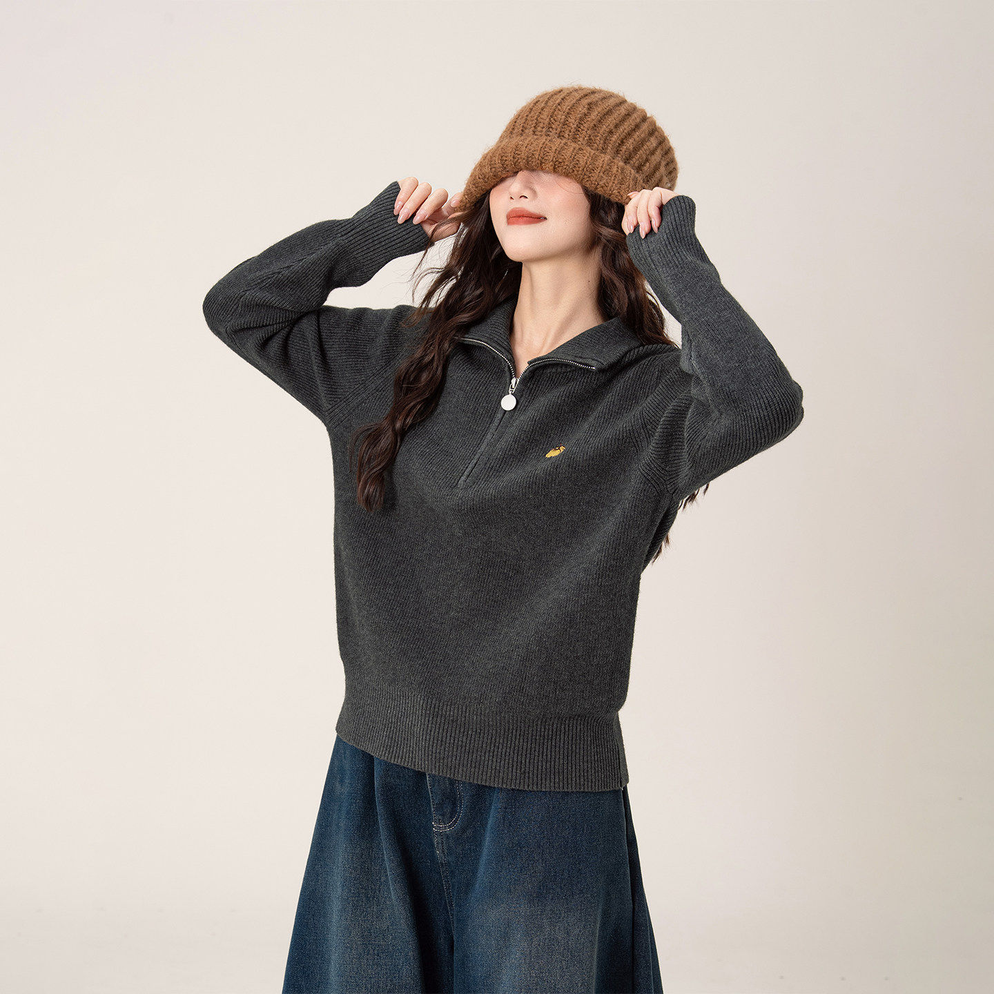 慵懒风半拉链高领毛衣女2026秋冬新款宽松百搭显瘦加厚保暖针织衫