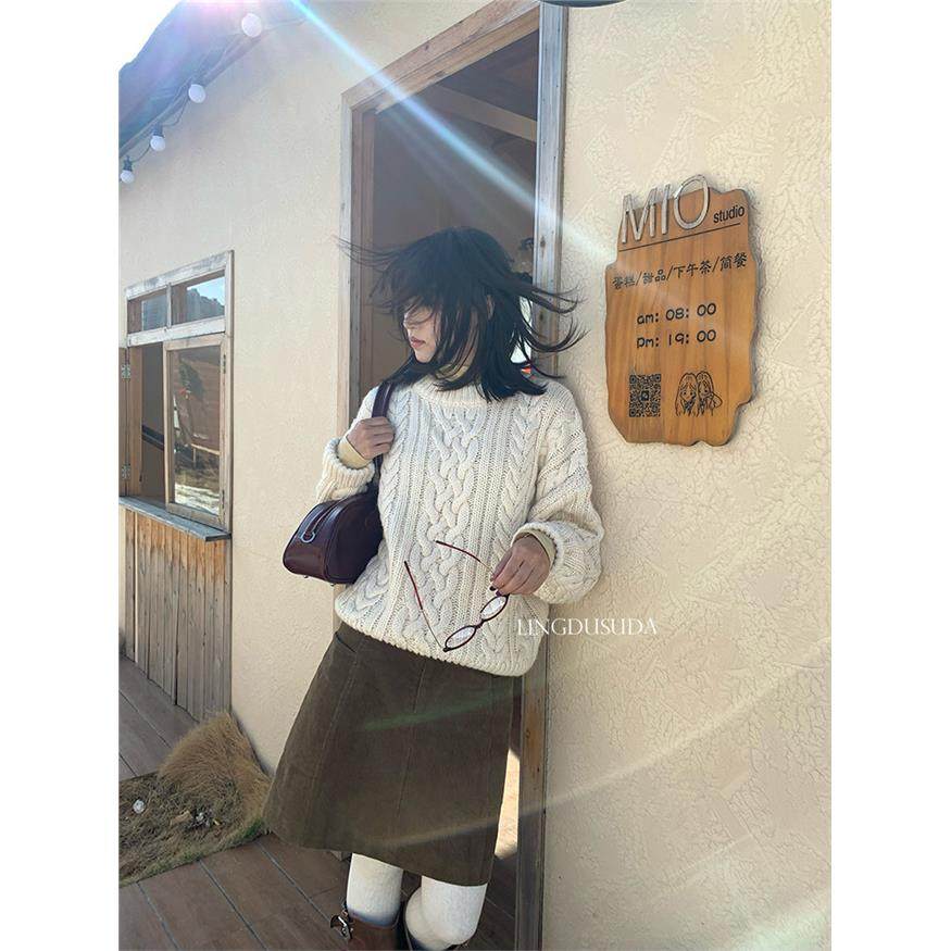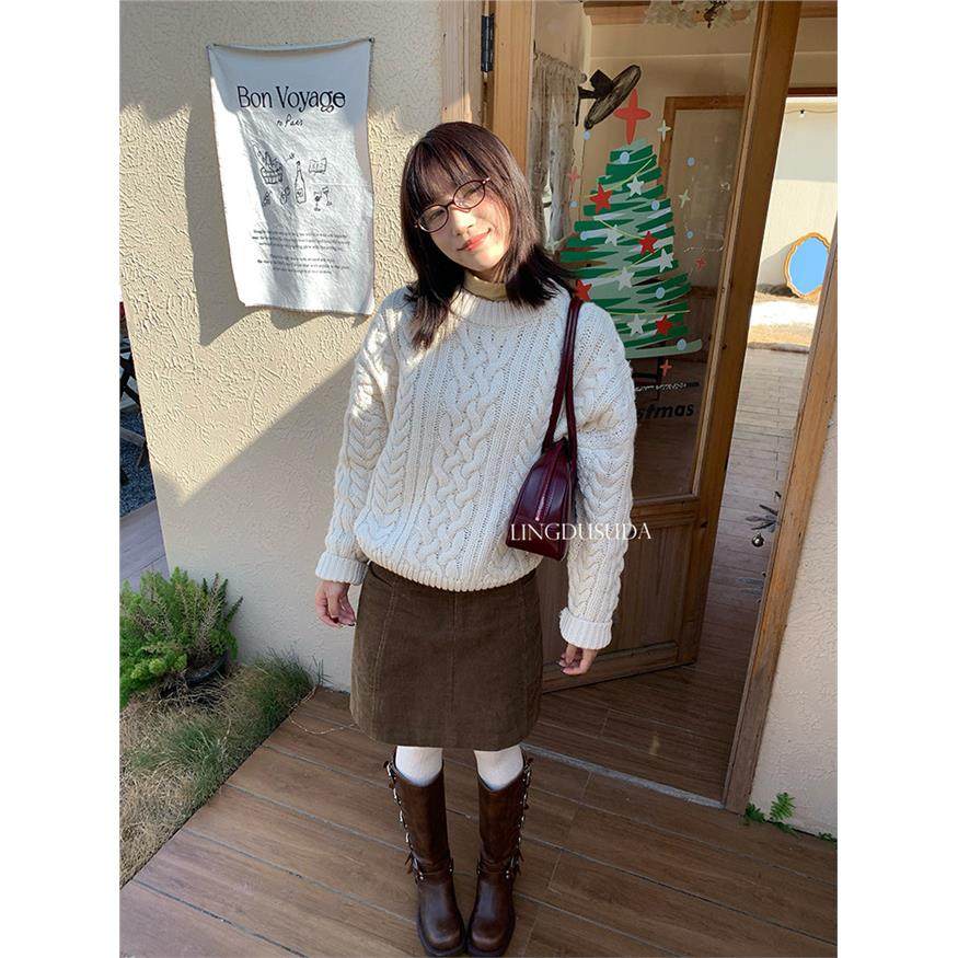 零度苏打 秋冬ins同款八奶家休闲麻花长袖针织衫宽松套头毛衣女