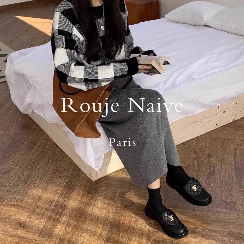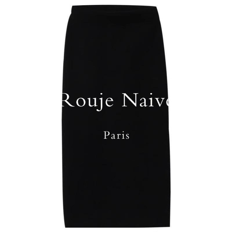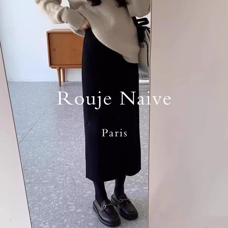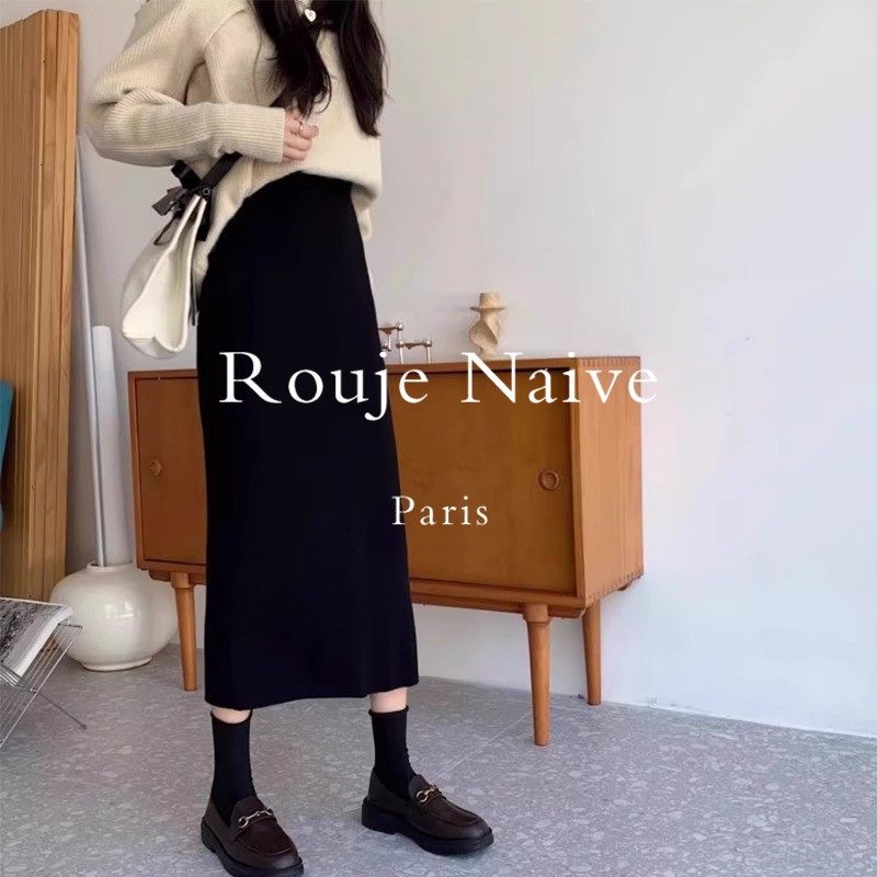 Rouje Naive黑色针织半身裙女秋冬季2025新款高腰直筒修身包臀裙