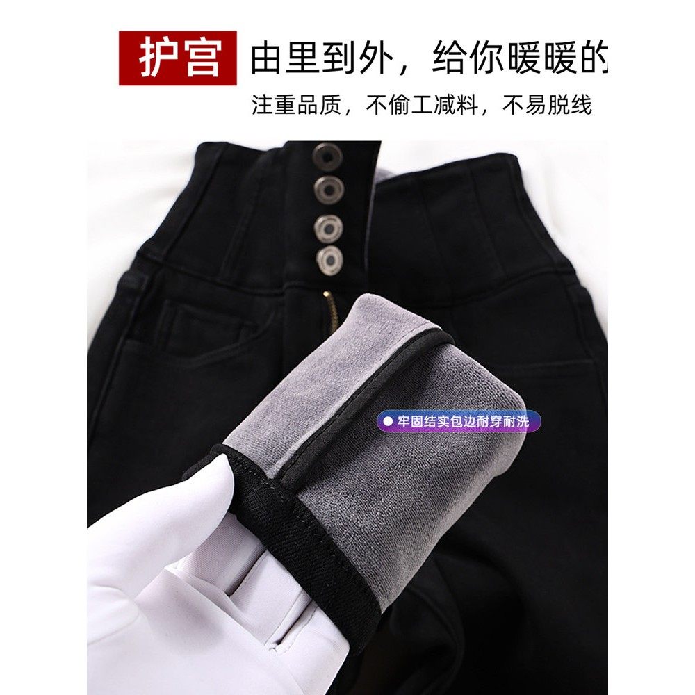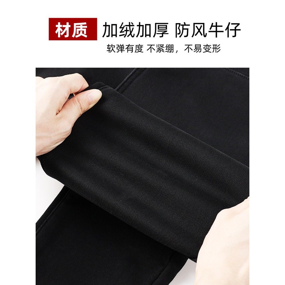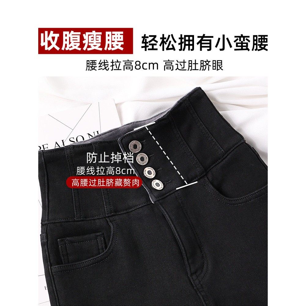高腰牛仔裤加绒女2024年新款冬季外穿弹力紧身显瘦加厚黑色小脚裤