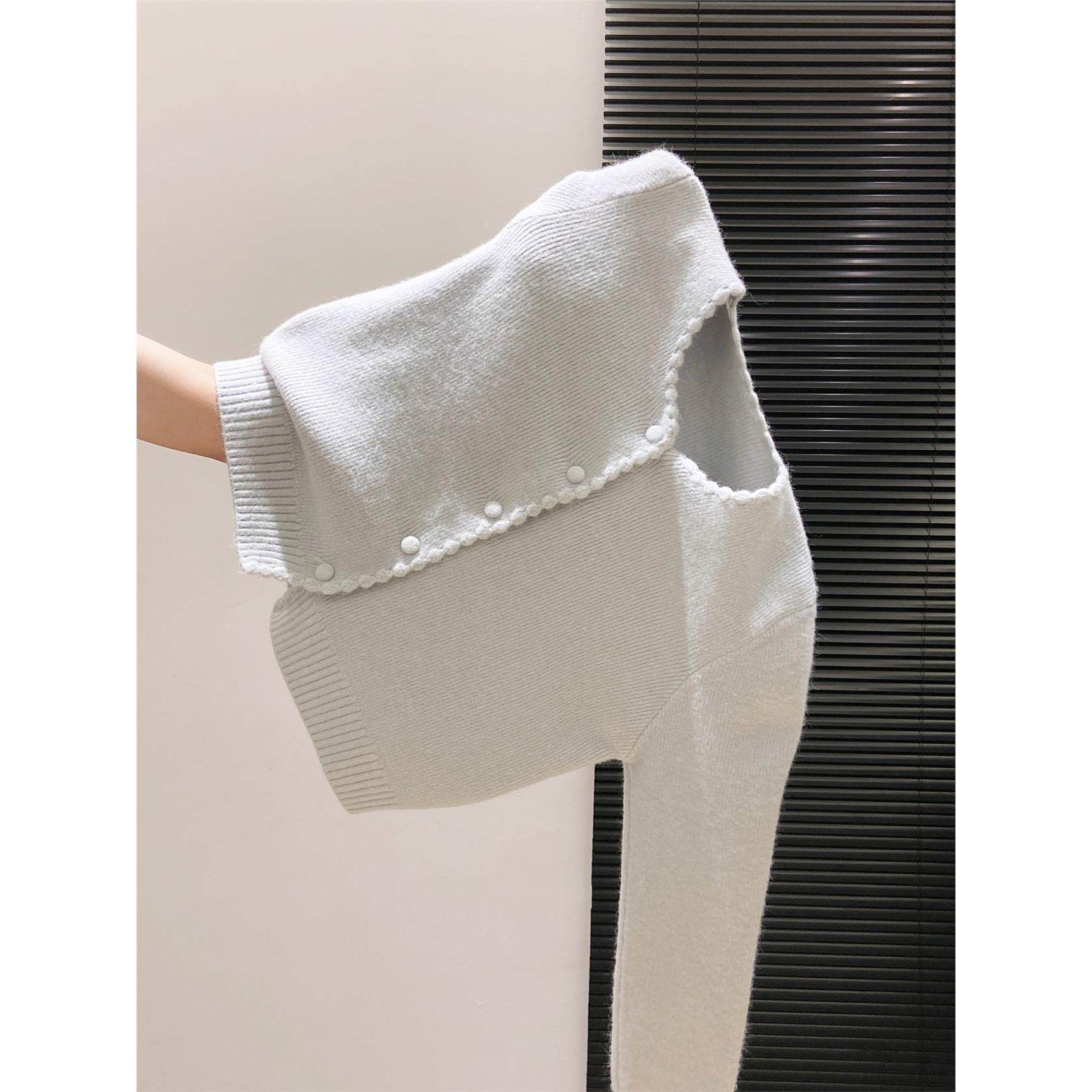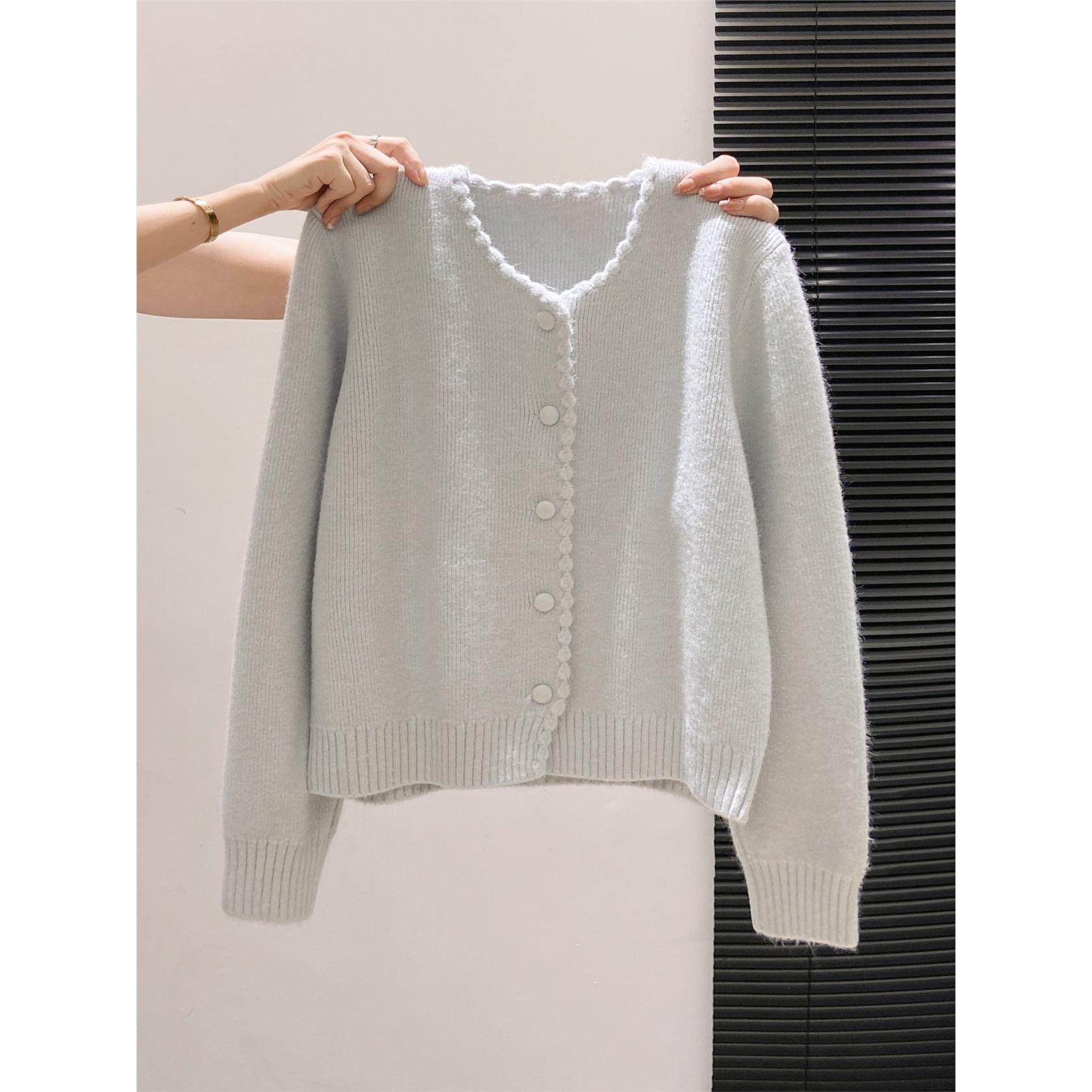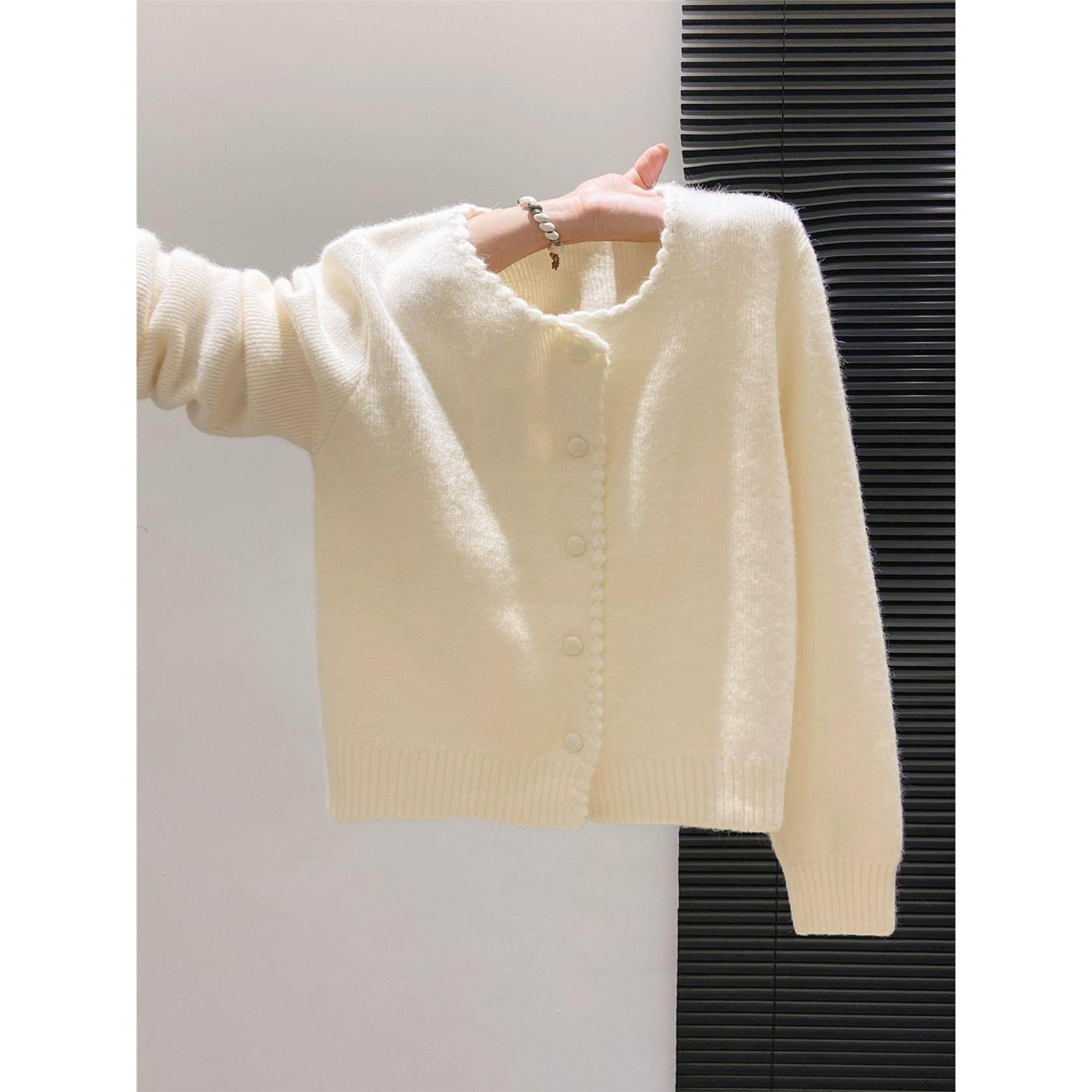 韩系软糯花边长袖针织衫女2025秋冬新款宽松加厚减龄毛衣外套上衣