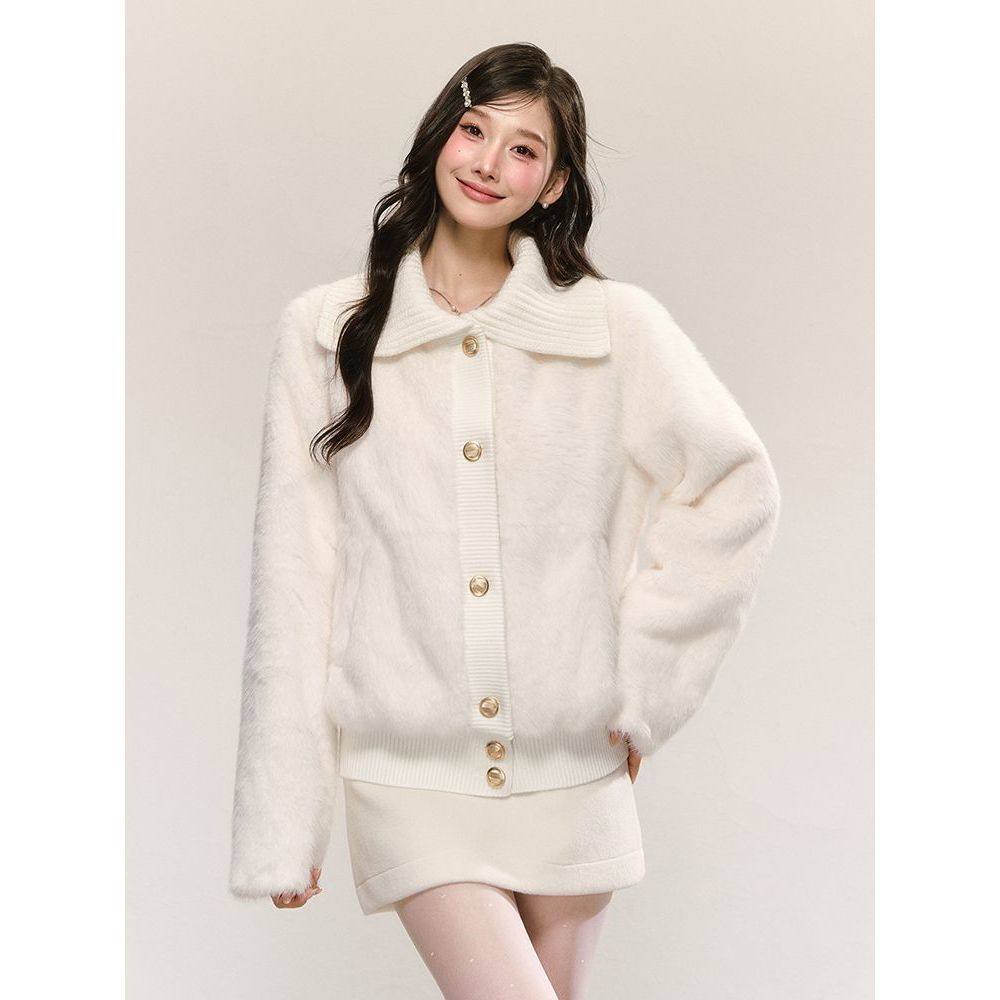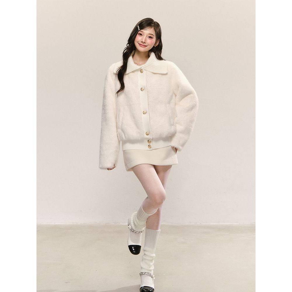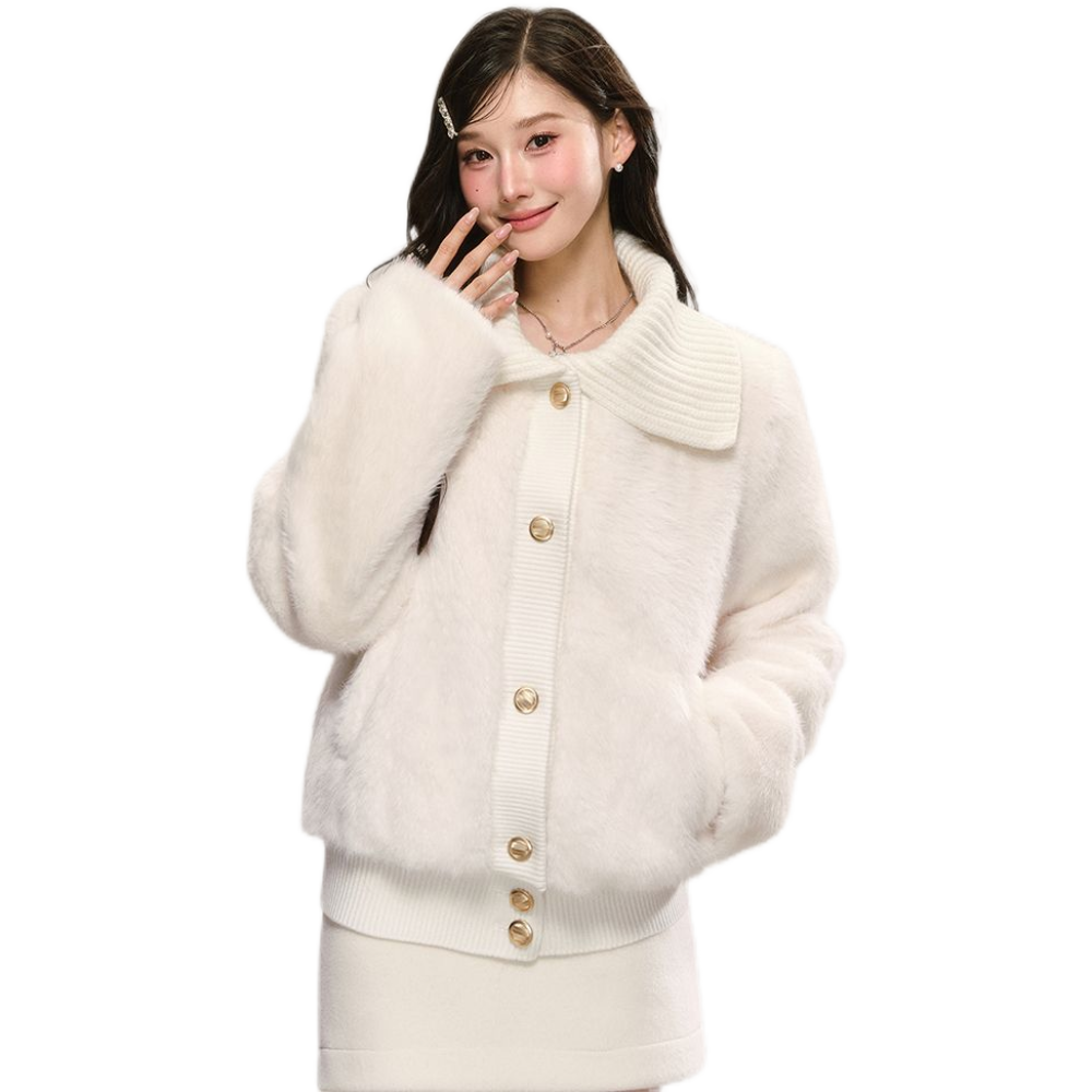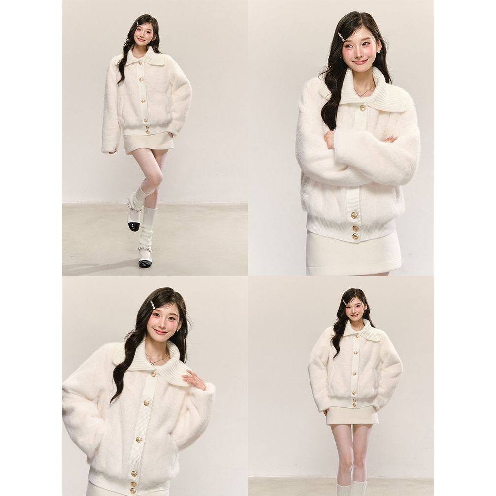 甜美可爱风软糯大翻领仿皮草气质高级感白色毛毛外套冬季新款女