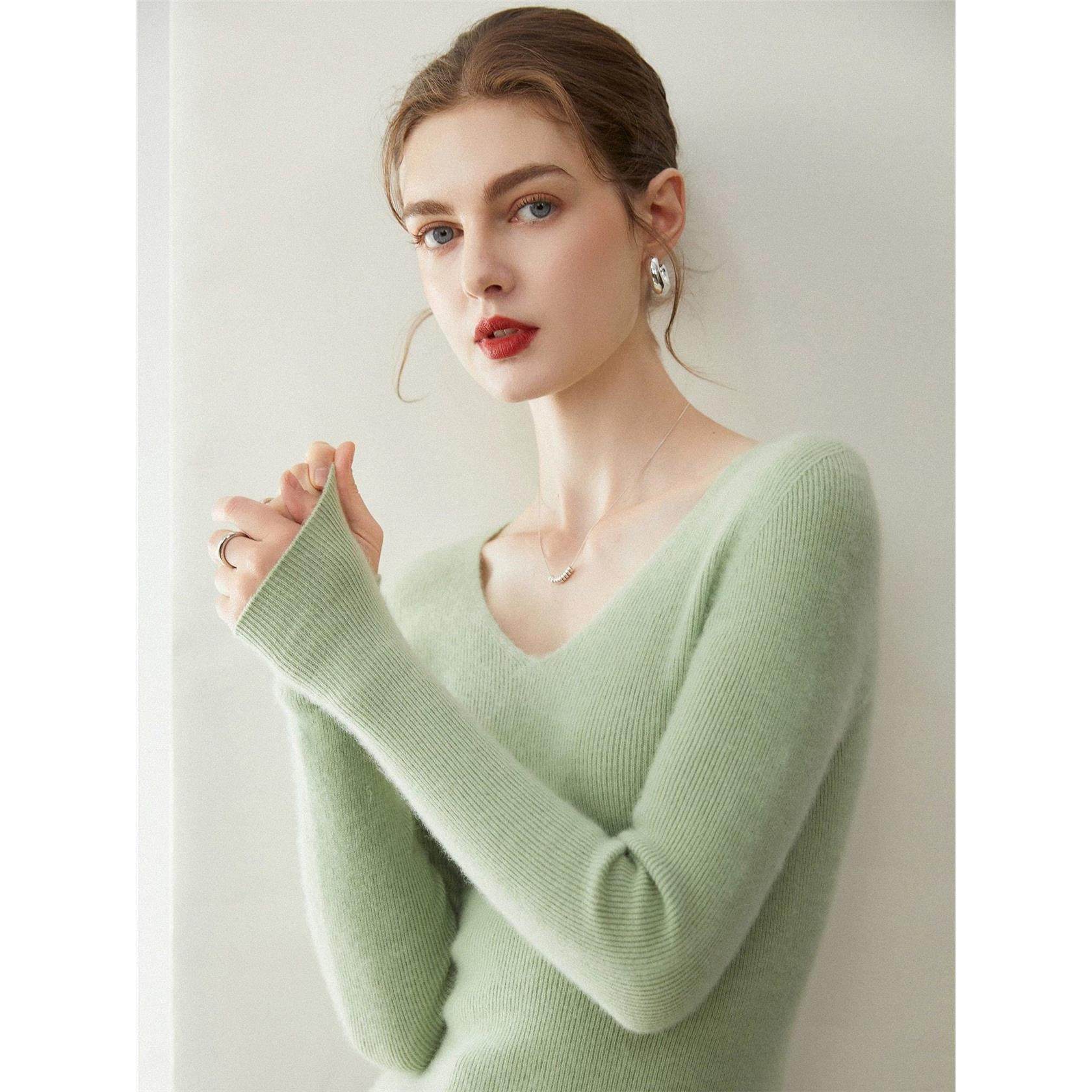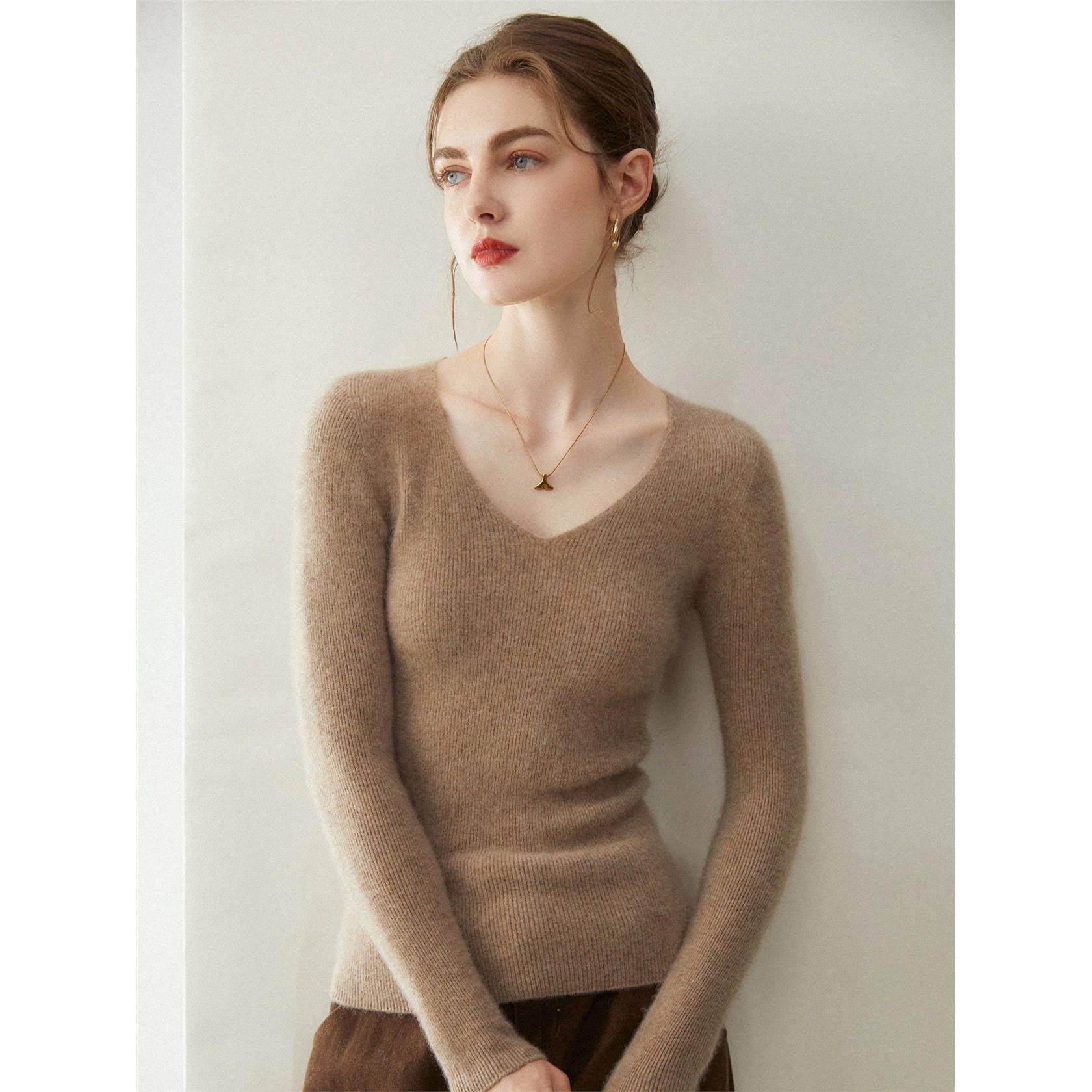 无缝一线成衣羊绒衫女V领修身毛衣秋冬季新款针织羊毛打底衫内搭