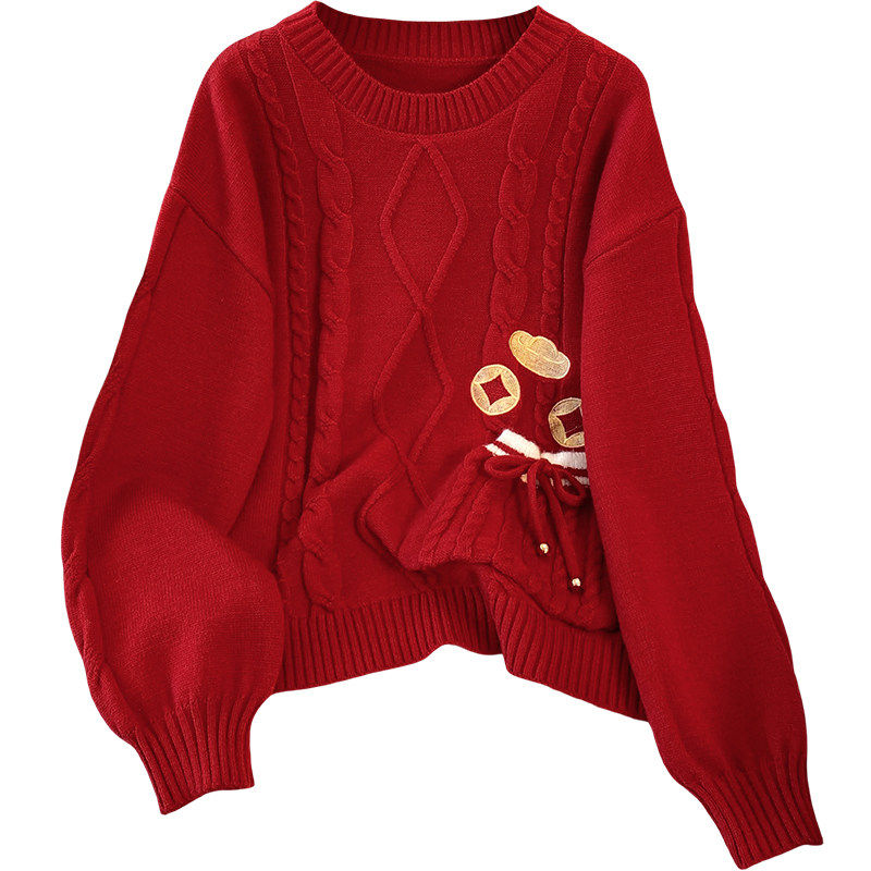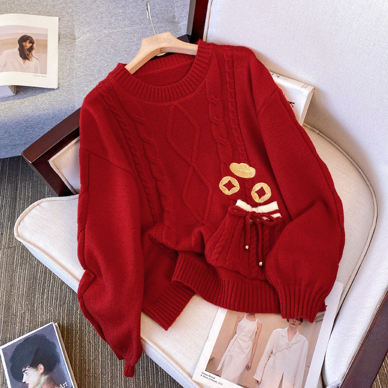 蛇年本命年红色毛衣女款时尚洋派2025新款冬季加厚过新年衣服上衣