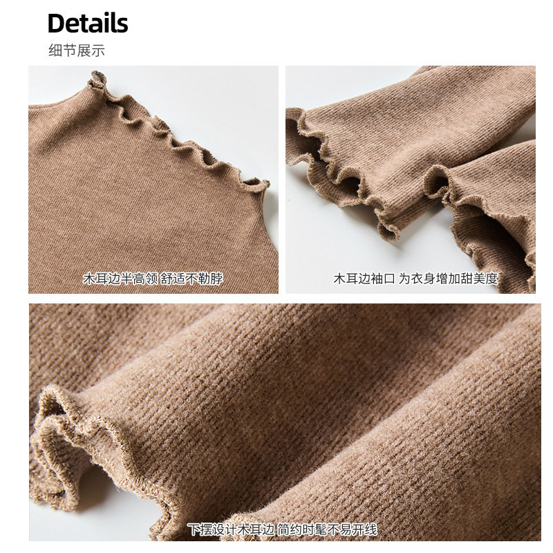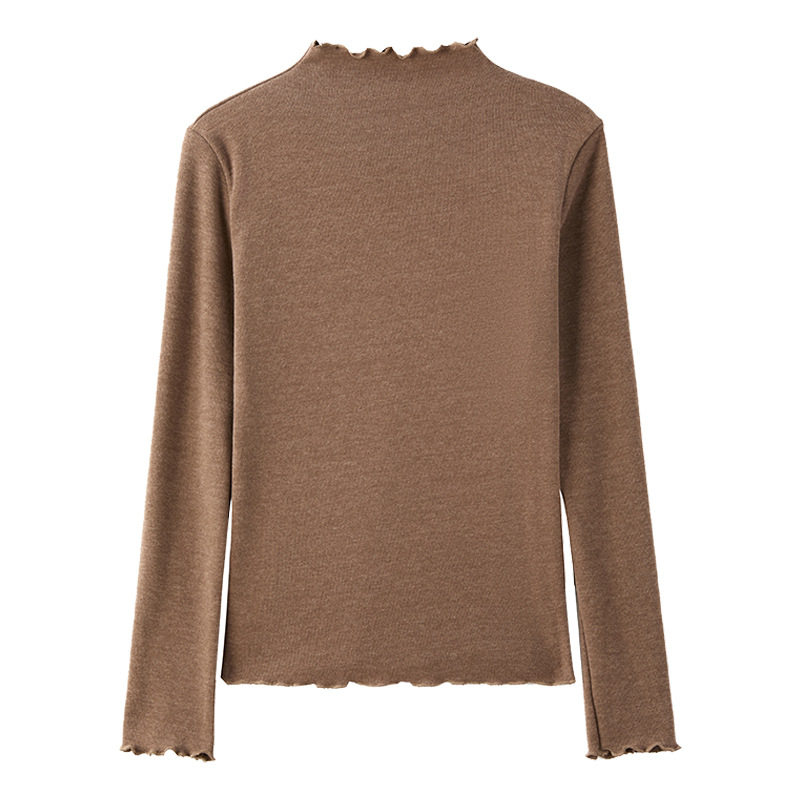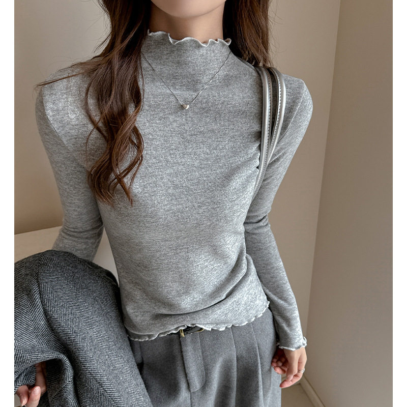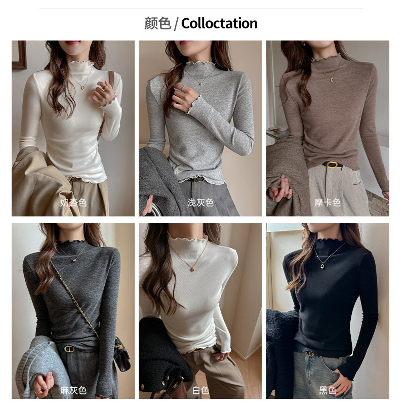 半高领木耳边保暖打底衫女秋冬新款内搭显瘦洋气修身韩版长袖上衣