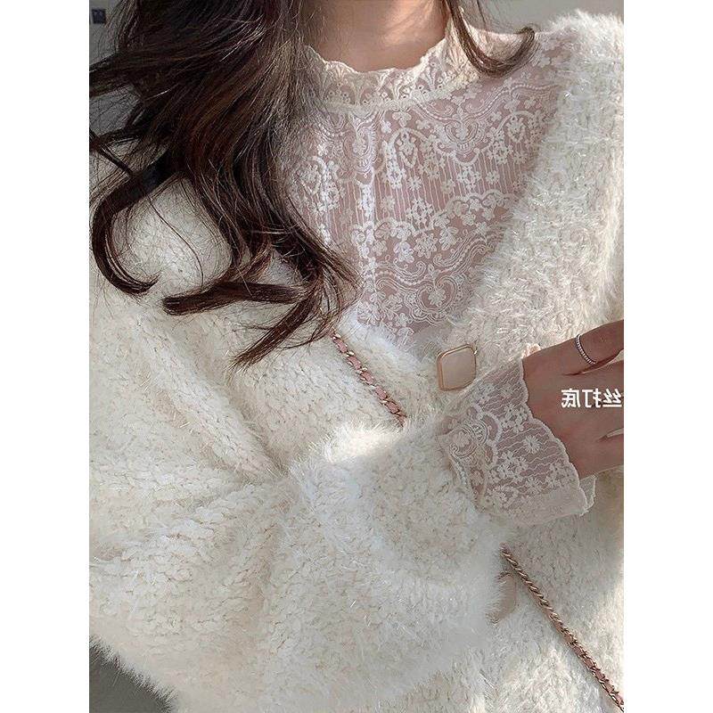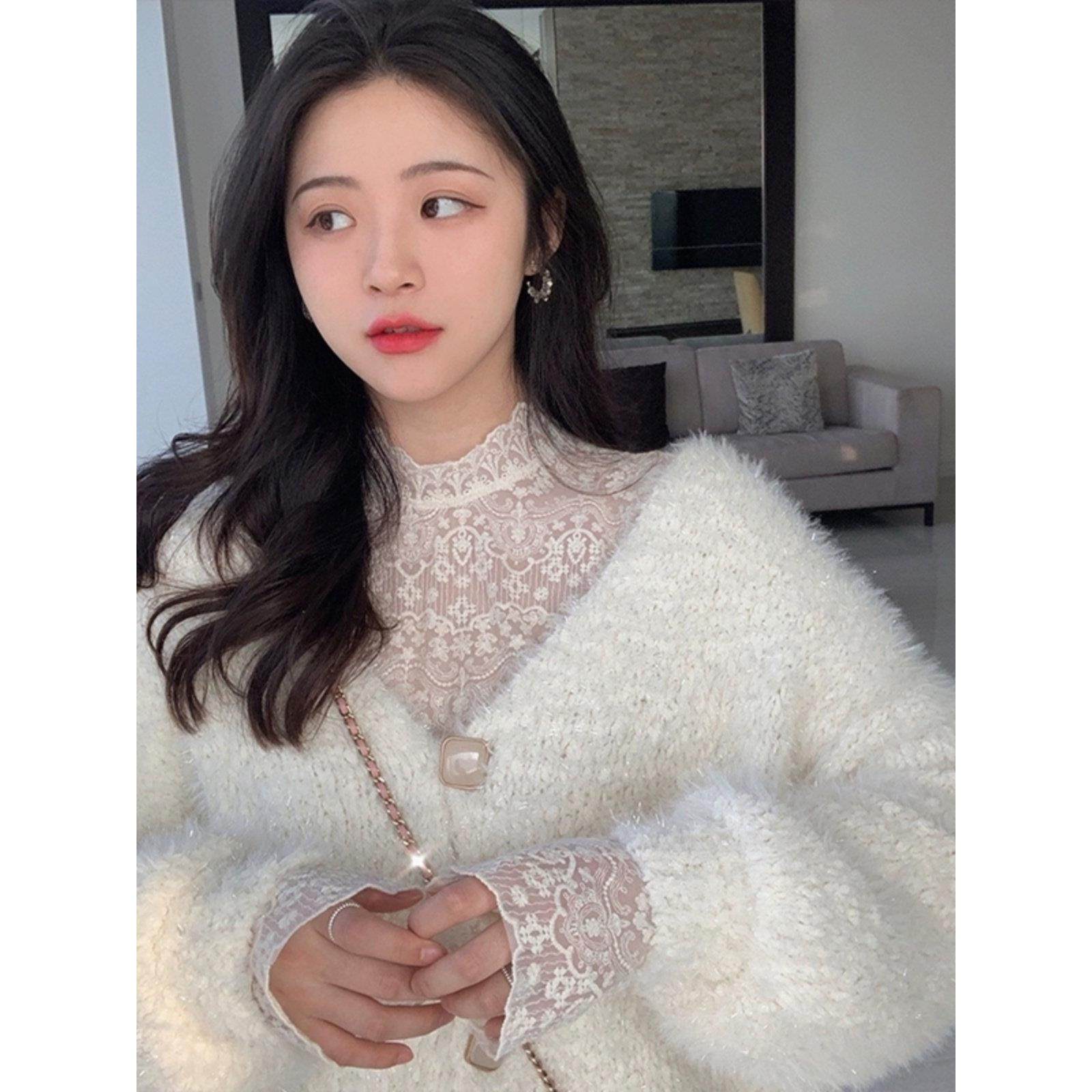 首页> 女装> 法国Rixo Rane 内搭网纱保暖小衫毛衣女冬加绒加厚蕾丝打底衫短款