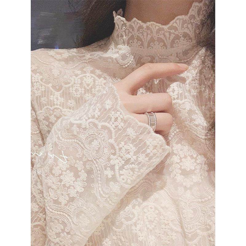 法国Rixo Rane 内搭网纱保暖小衫毛衣女冬加绒加厚蕾丝打底衫短款