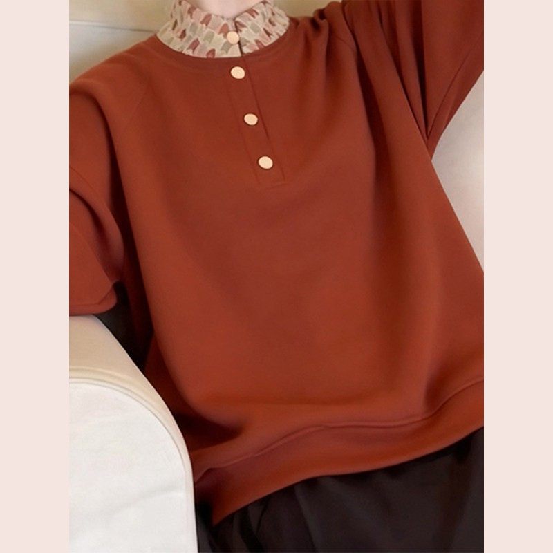 新中式国风焦糖色立领半开纽扣卫衣2025新款设计感复古小众上衣秋