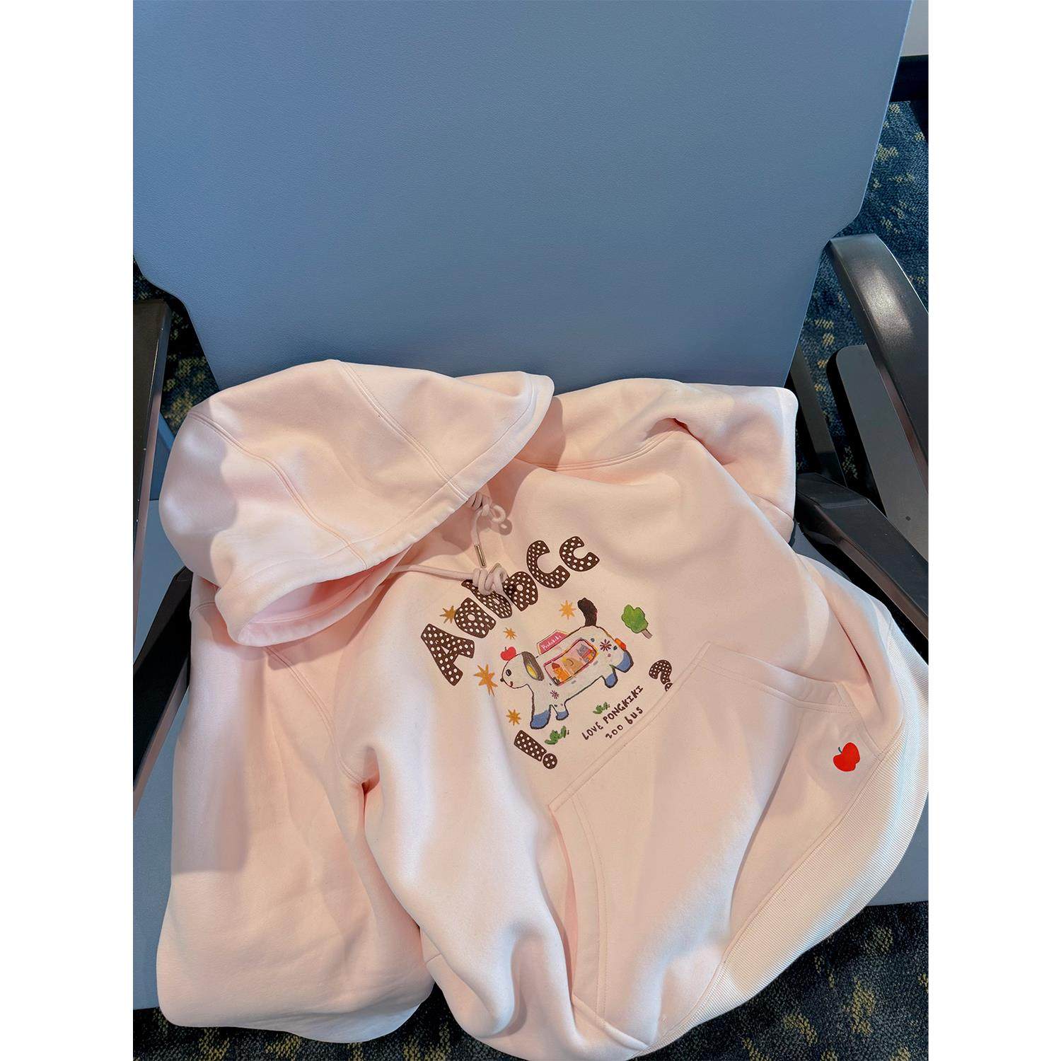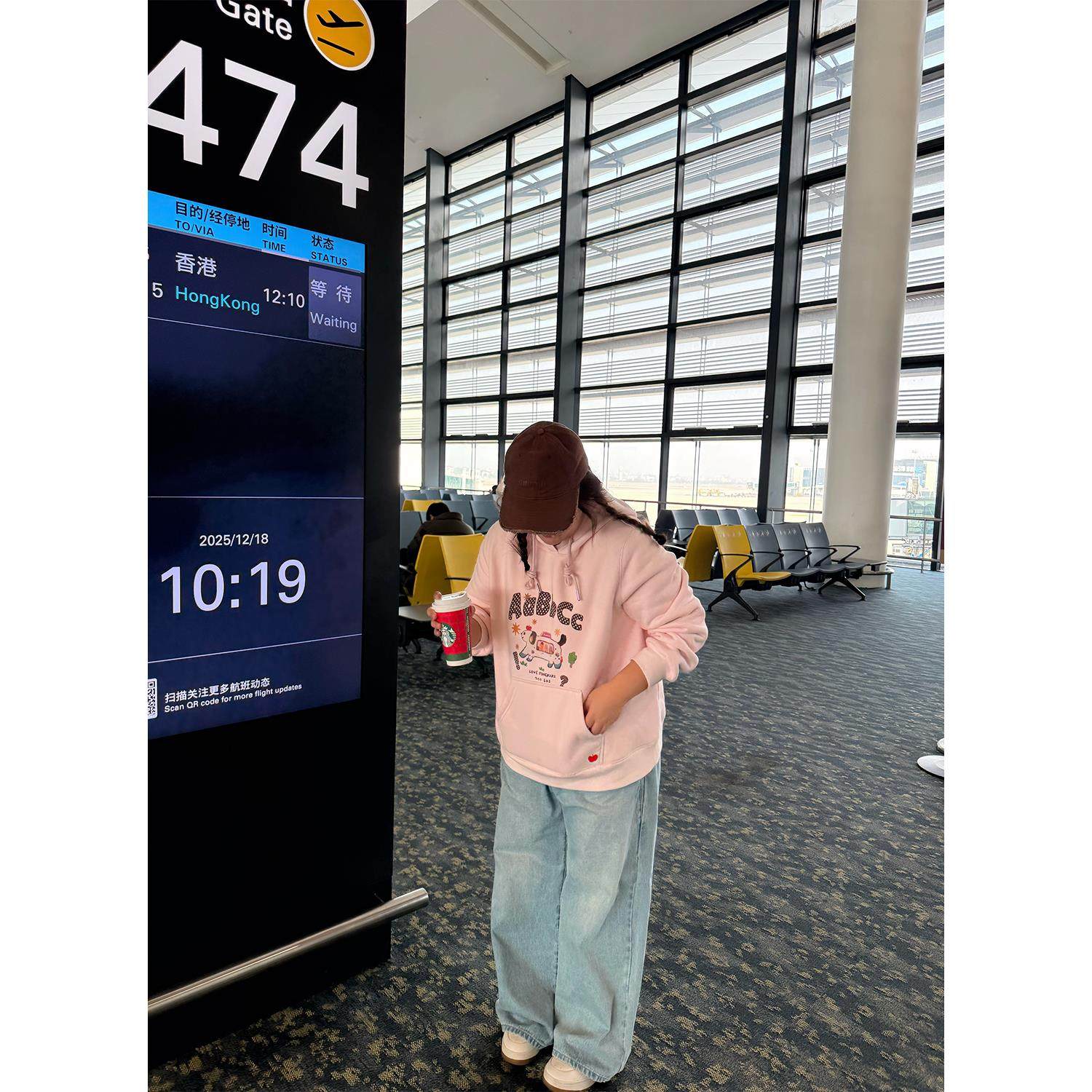 老章和小胖PONGKIKI粉糯糯小狗保暖加绒卫衣女大尺码百搭连帽上衣