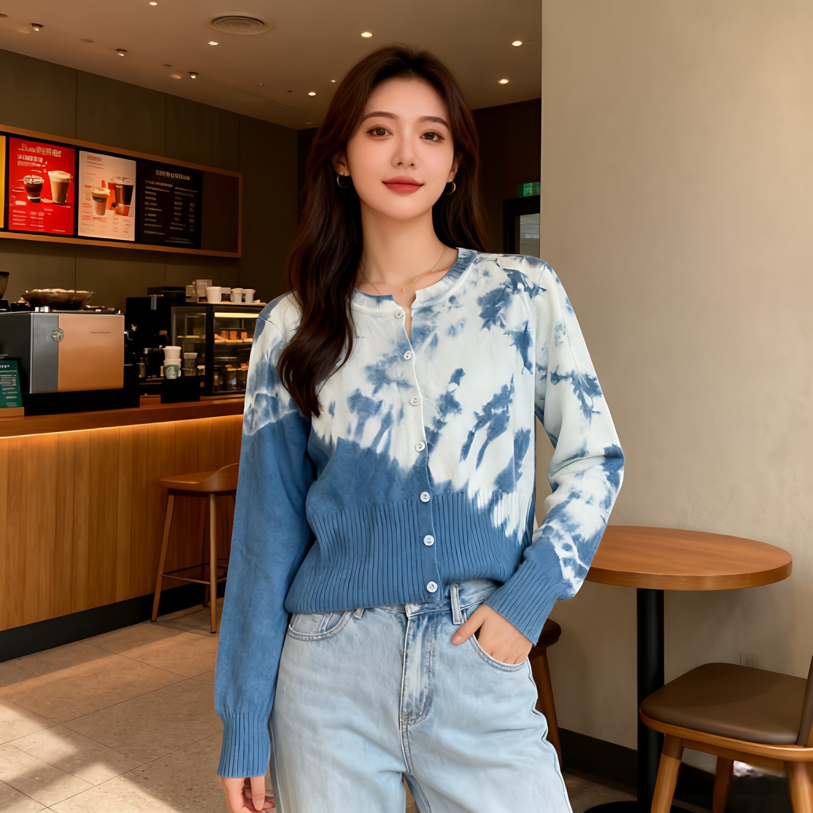 首页> 女装> 云南扎染针织衫外套女2026春秋新款宽松上衣开衫女百搭长袖毛衣女