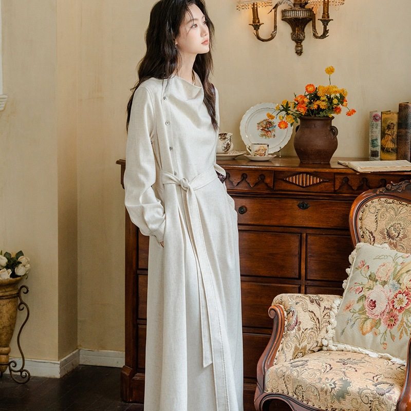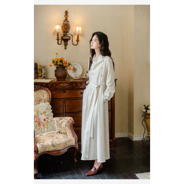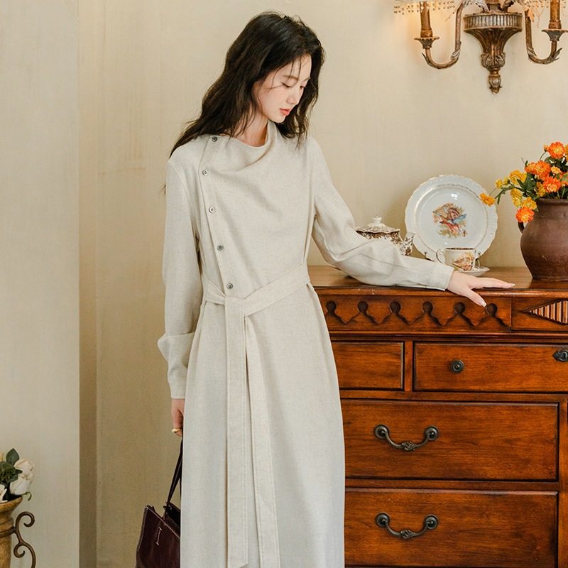 枝冉卷老钱风淡人高知风衣连衣裙长袖长裙子正式重要场合内搭外套