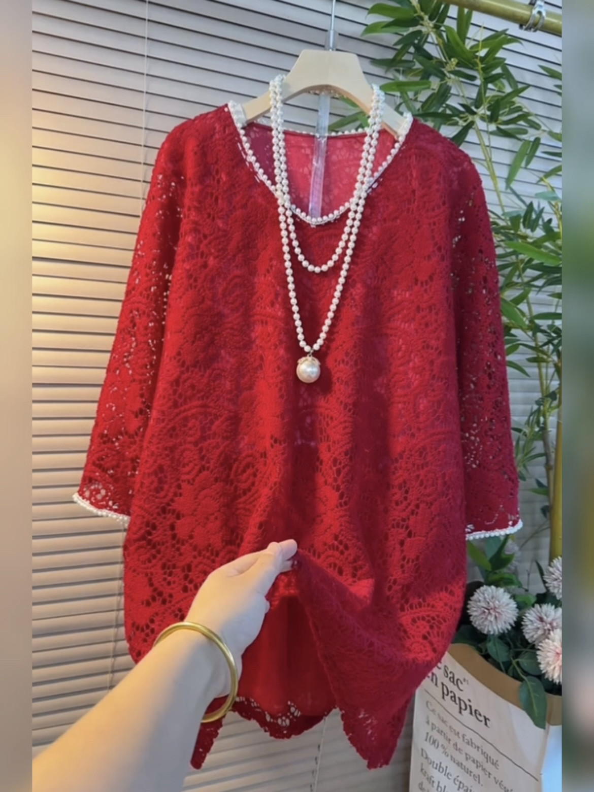 春夏大码重工钉珠蕾丝衫女宽松显瘦洋气减龄中长款上衣内搭打底衫