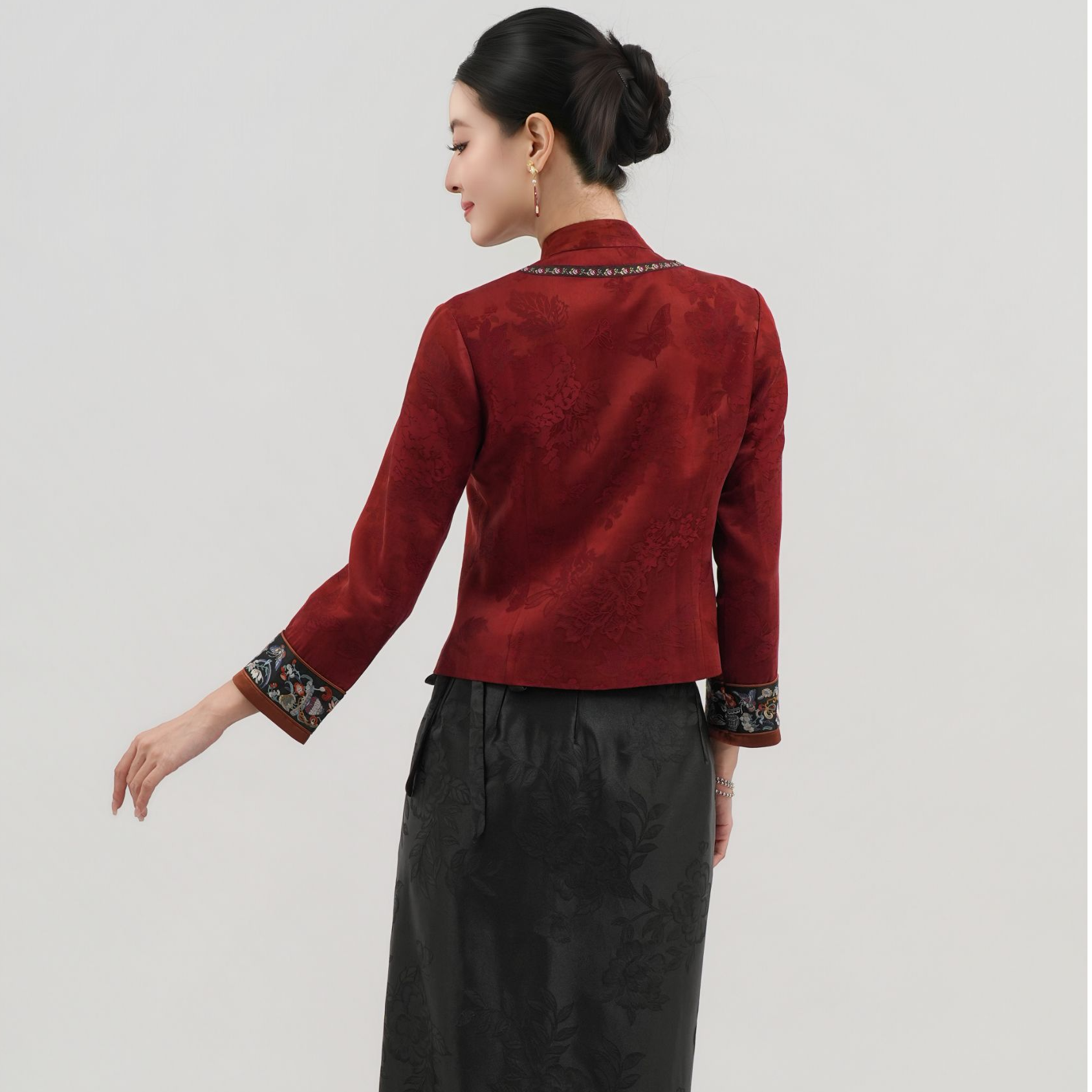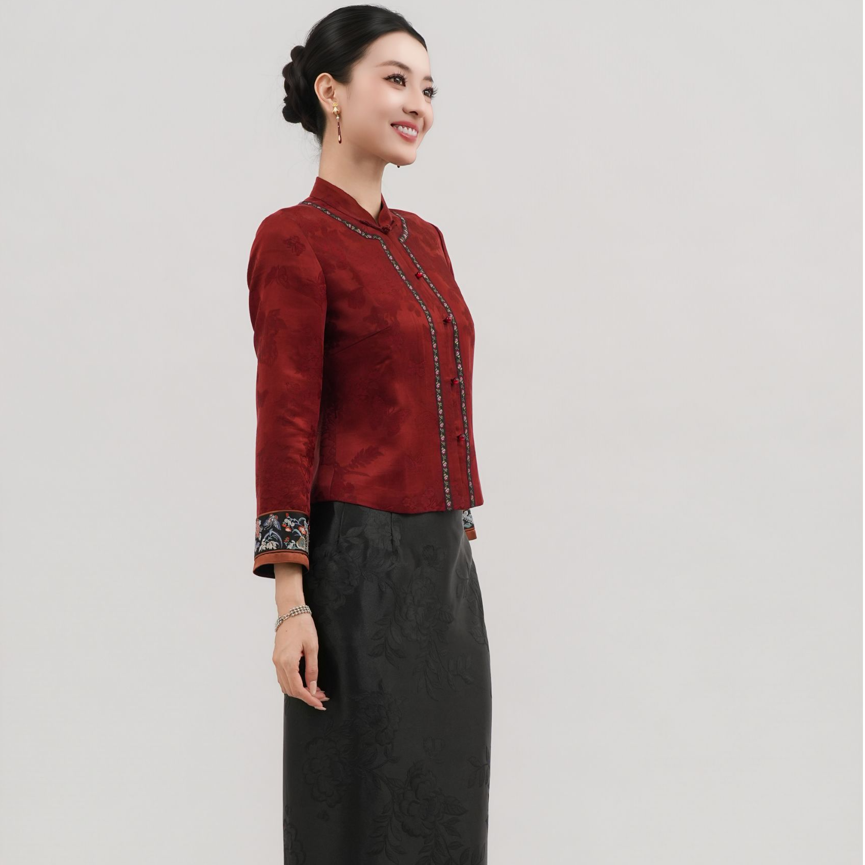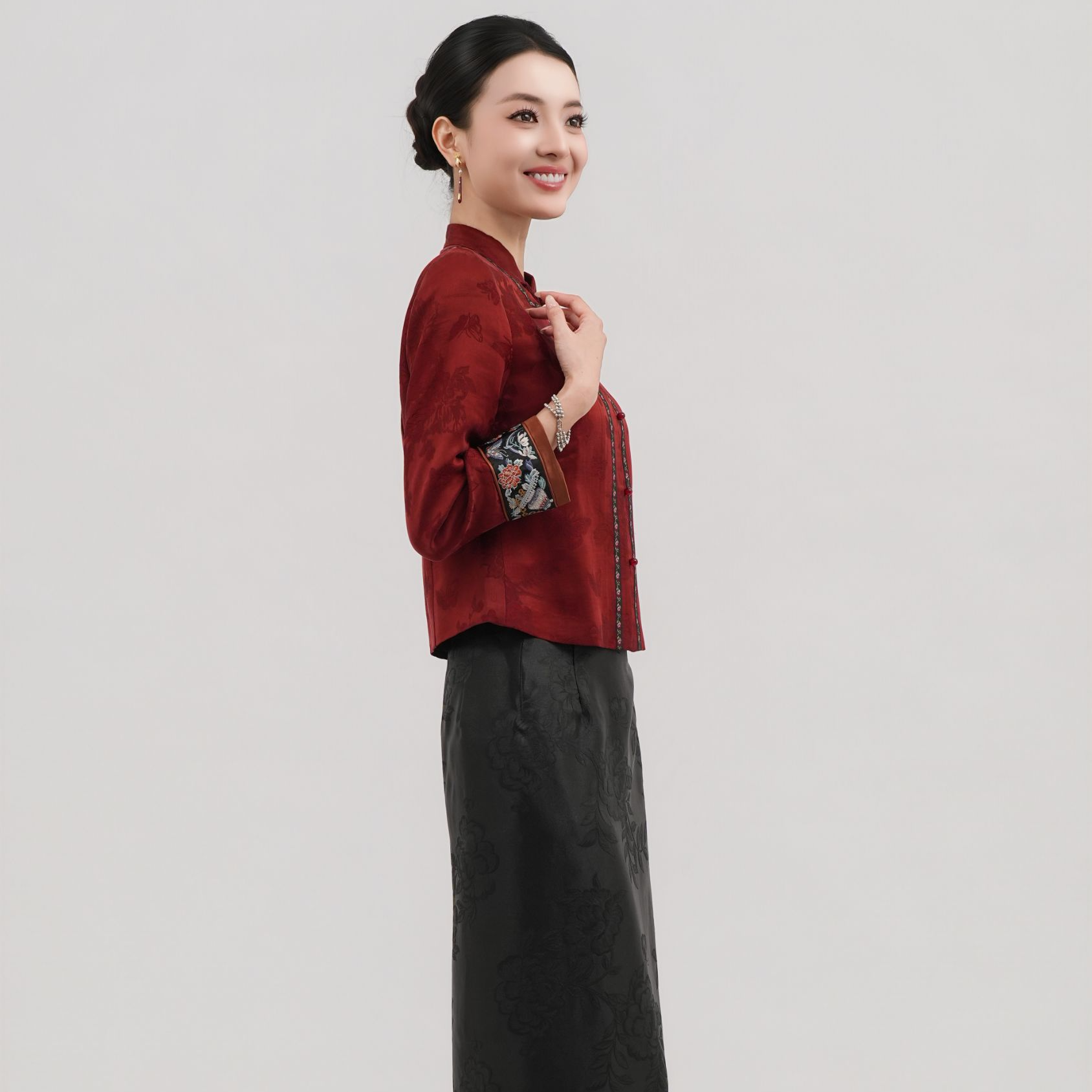 玉家人《勐知》真丝香云纱40姆米蝶恋花冬春款长袖上衣新年战袍