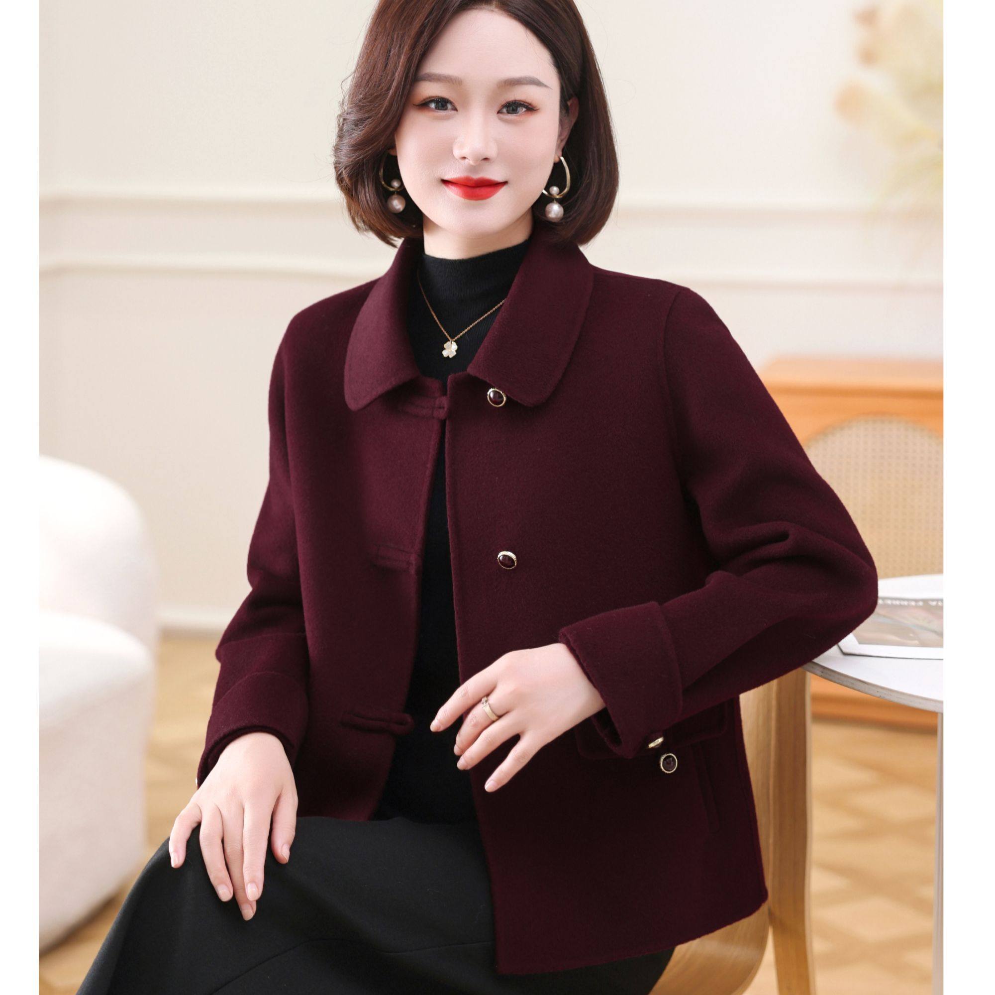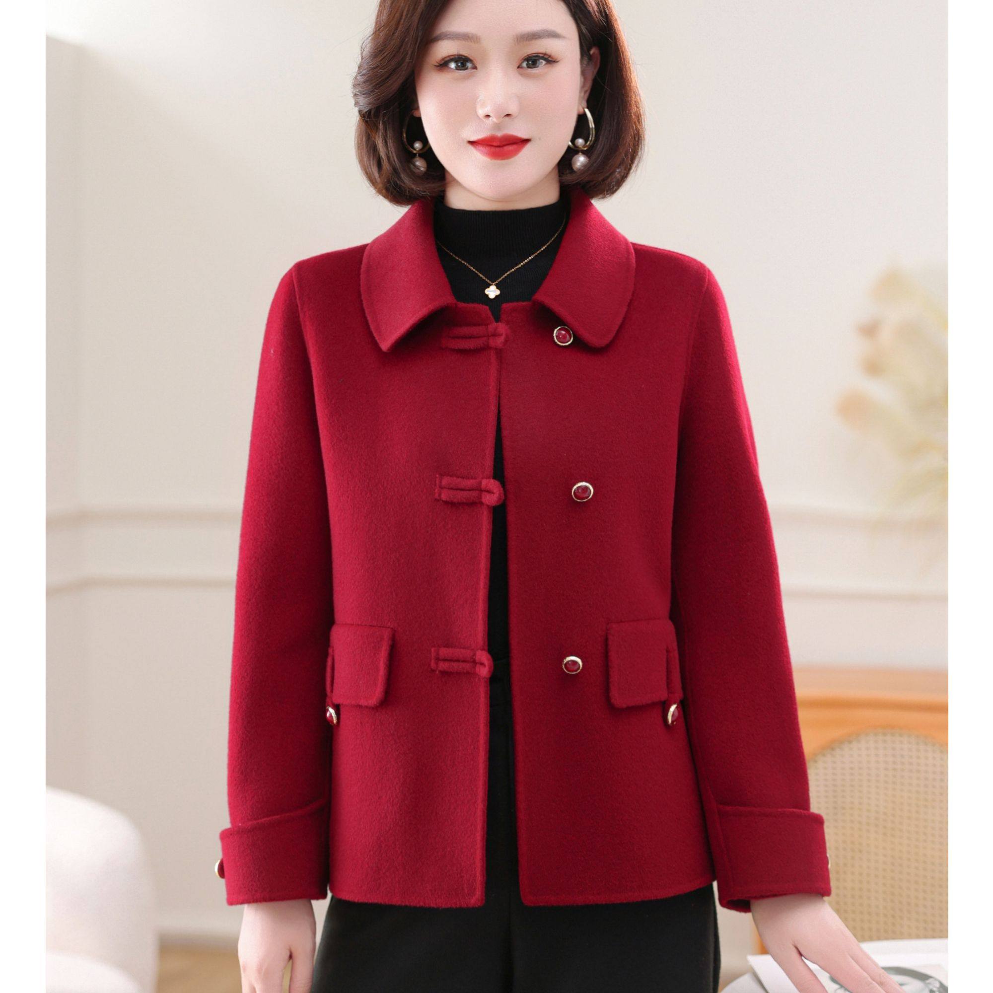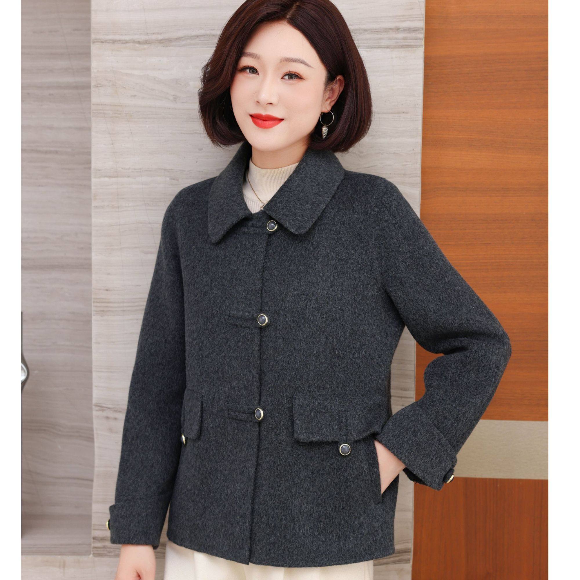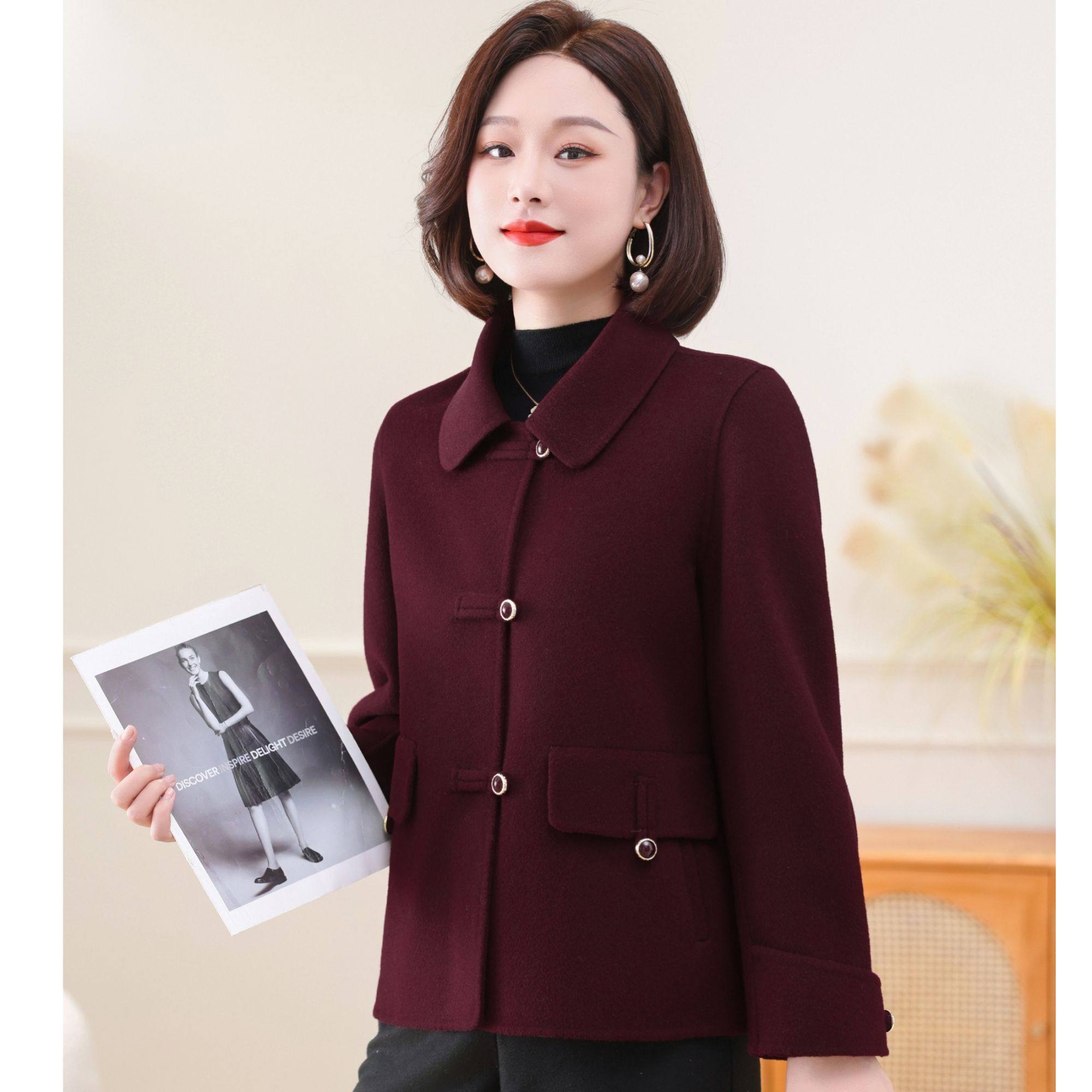孜洋秋冬新款中老年羊毛大衣女短款双面羊毛呢外套5202