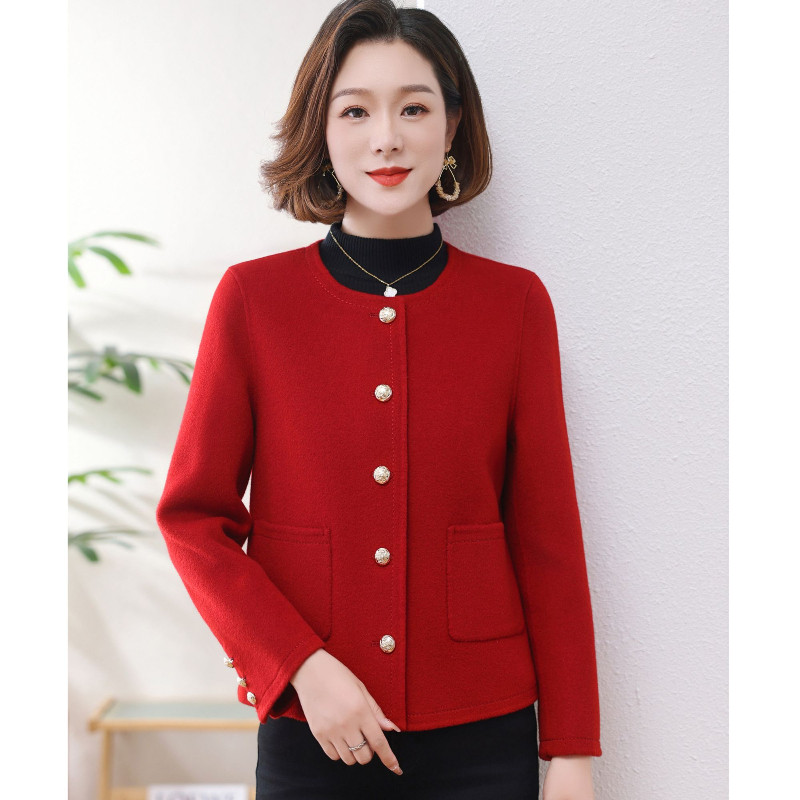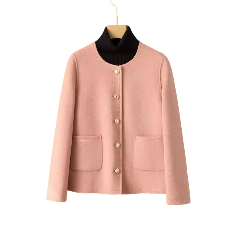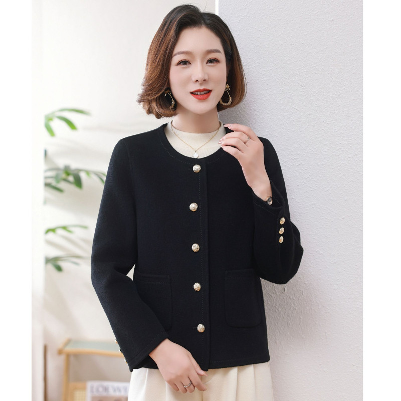 孜洋双面羊毛大衣女短款小香风低圆领小个子毛呢外套2409