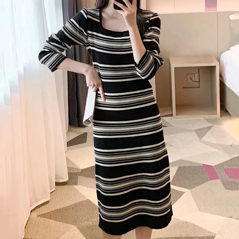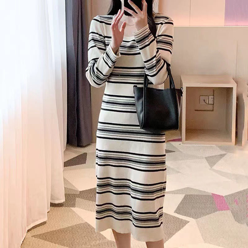 秋装长袖针织连衣裙遮肚子减龄长款毛衣裙气质宽松显瘦内搭打底裙