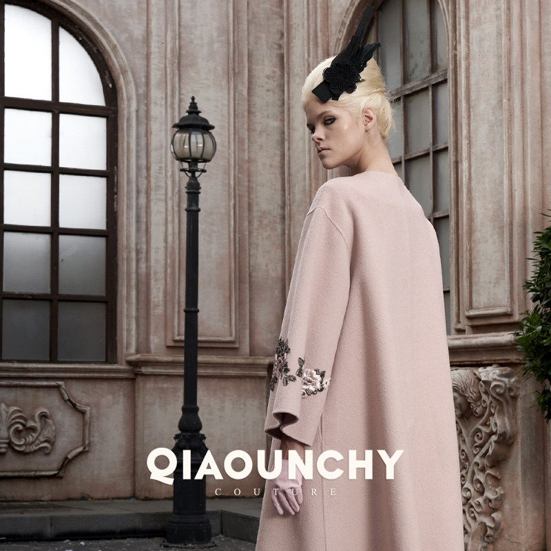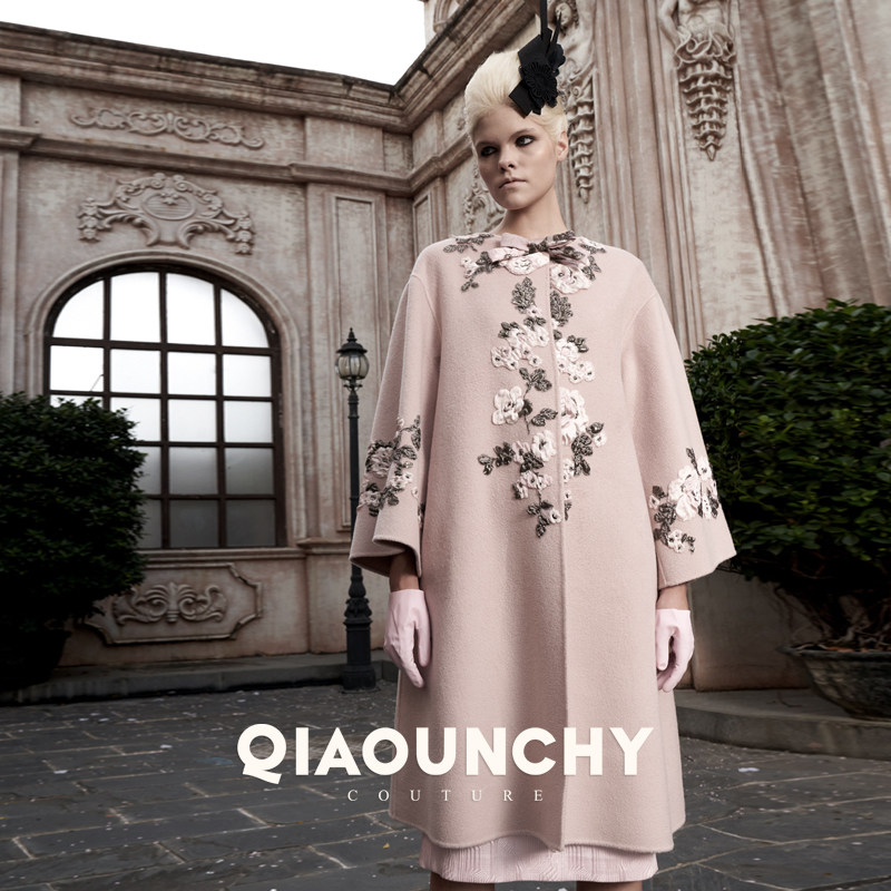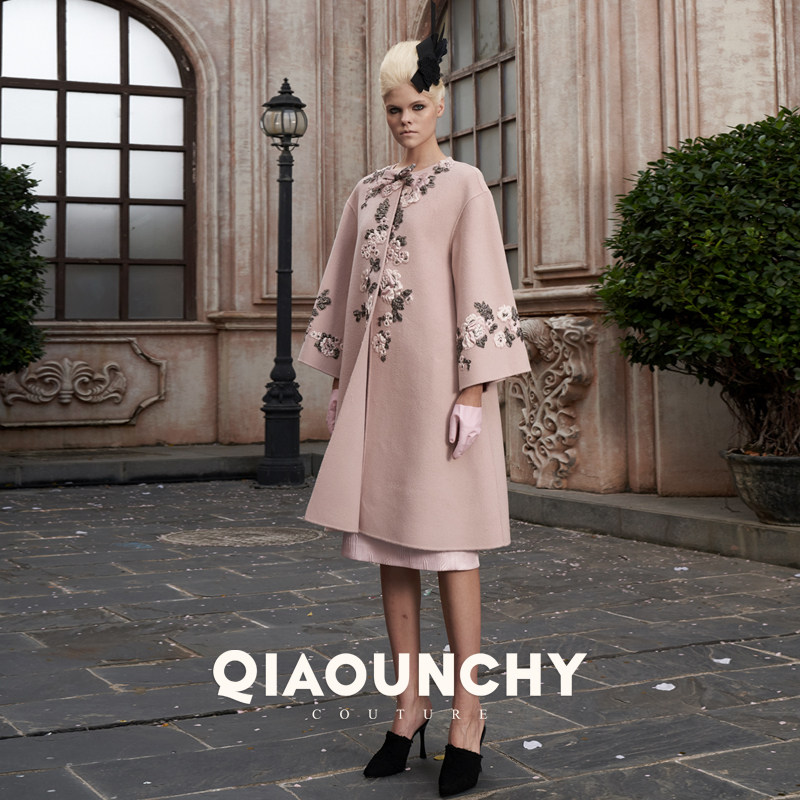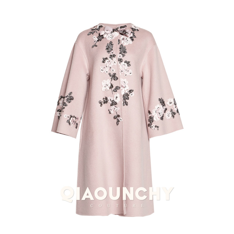 意大利进口花朵高定 QIAOUNCHY俏云曦 | 粉色羊毛双面呢手缝大衣