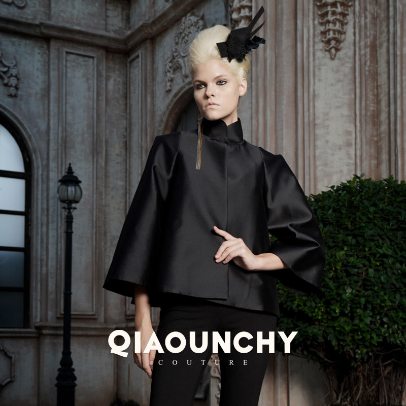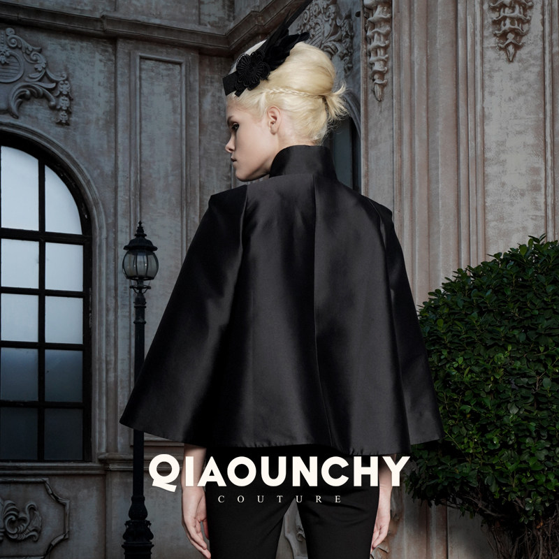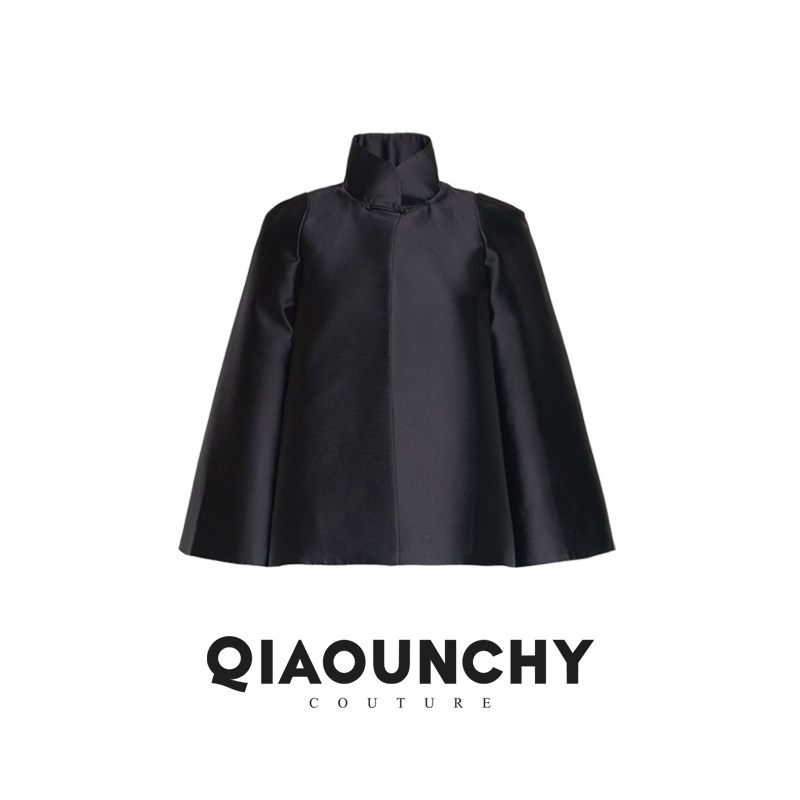 新国风 QIAOUNCHY俏云曦 | 黑色缎面立领盘扣宽袖A摆短外套25秋冬