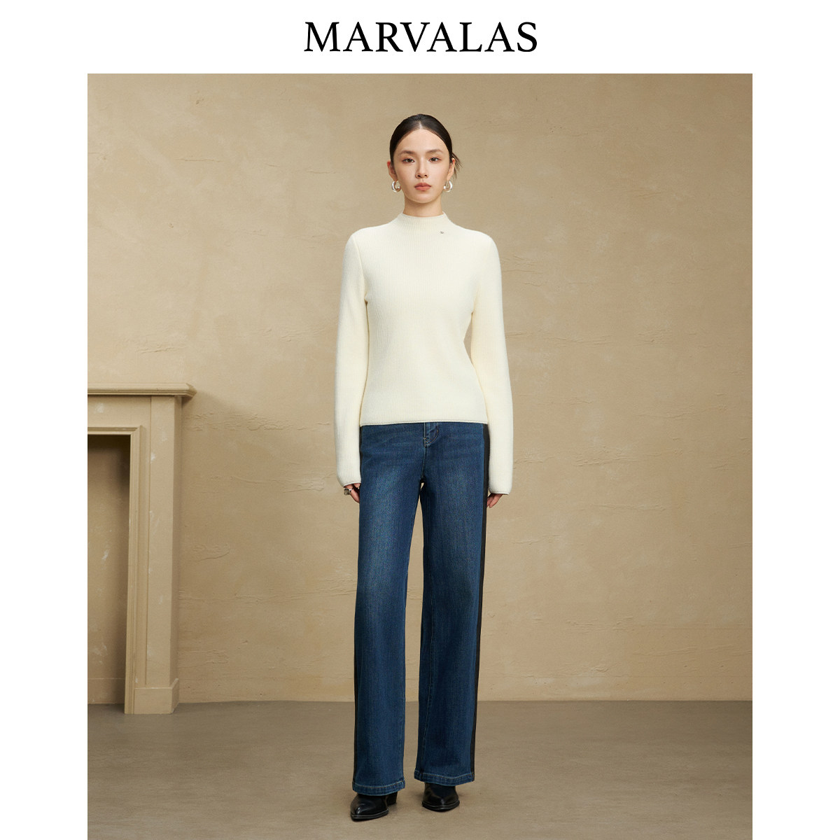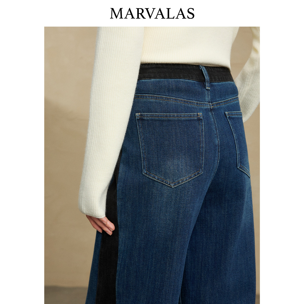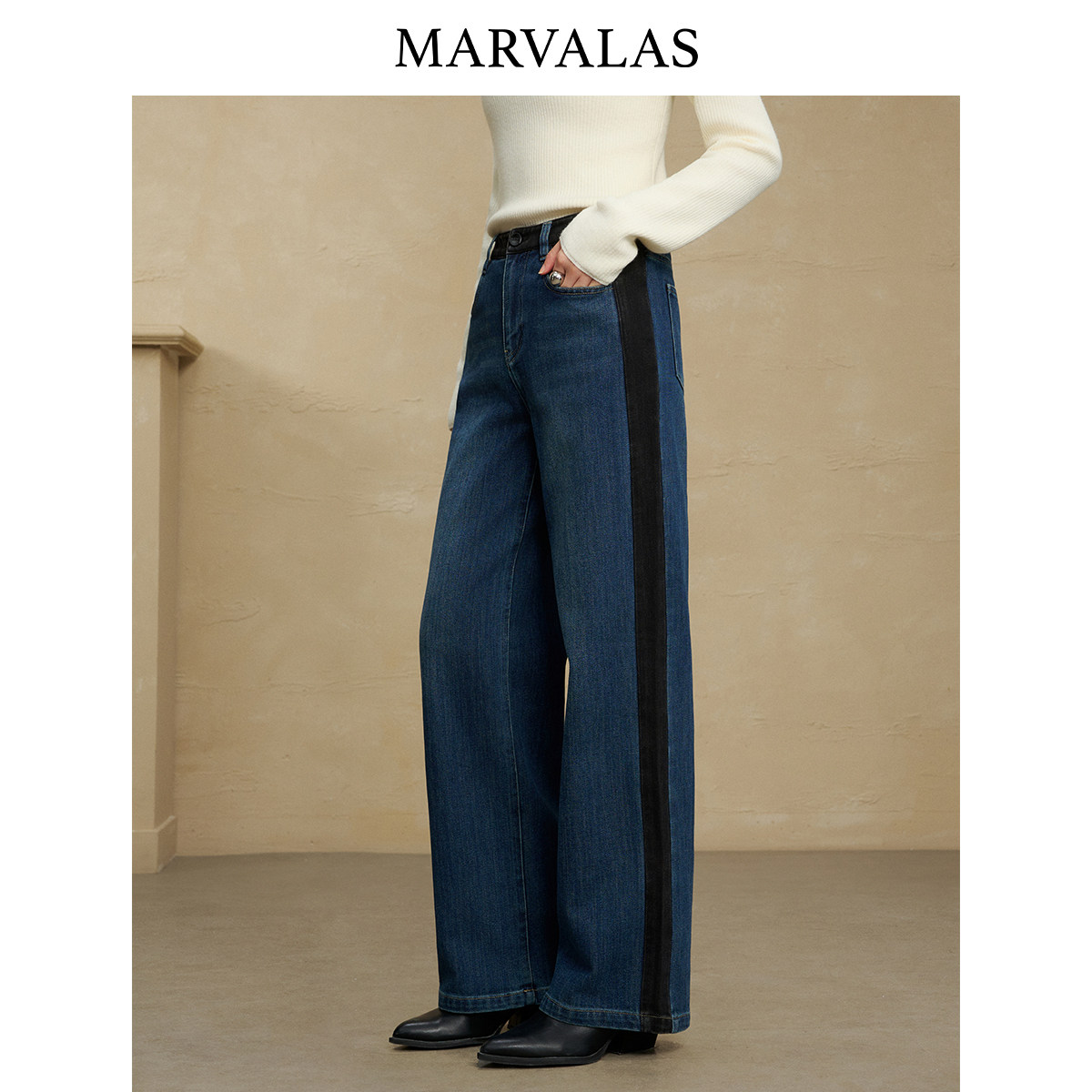 【粉丝专属】曼德诗高腰牛仔裤女2025冬季新款撞