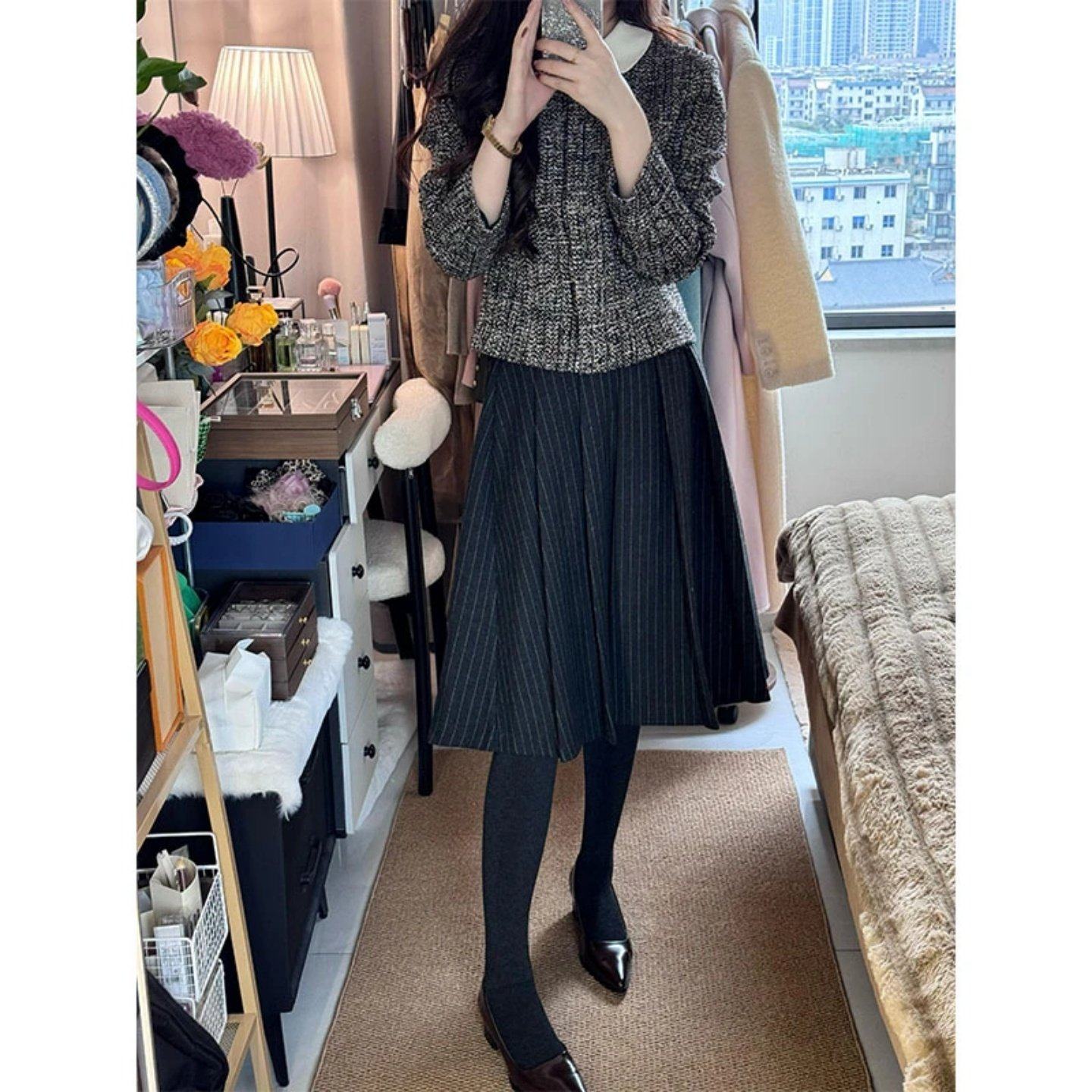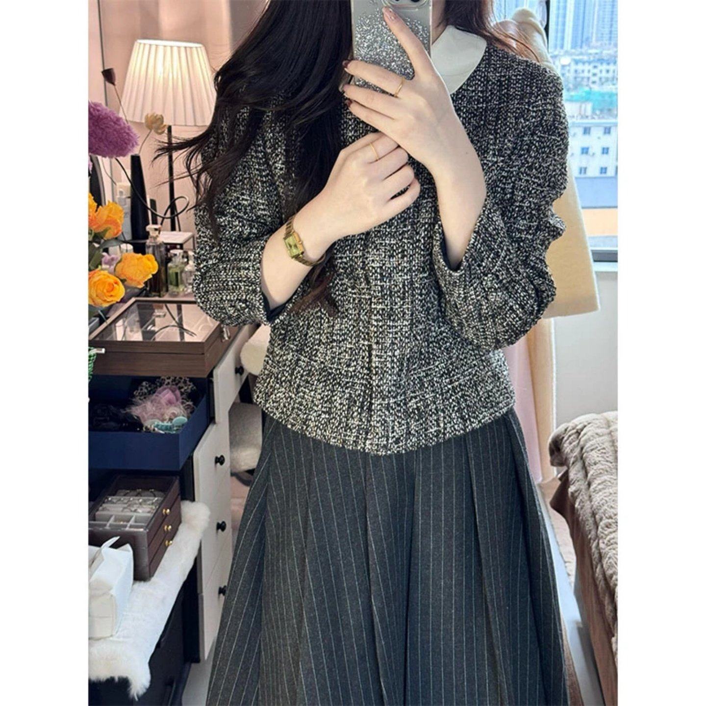 巨好看2026穿搭一整套富家千金粗花呢收腰外套高腰显瘦百褶半身裙