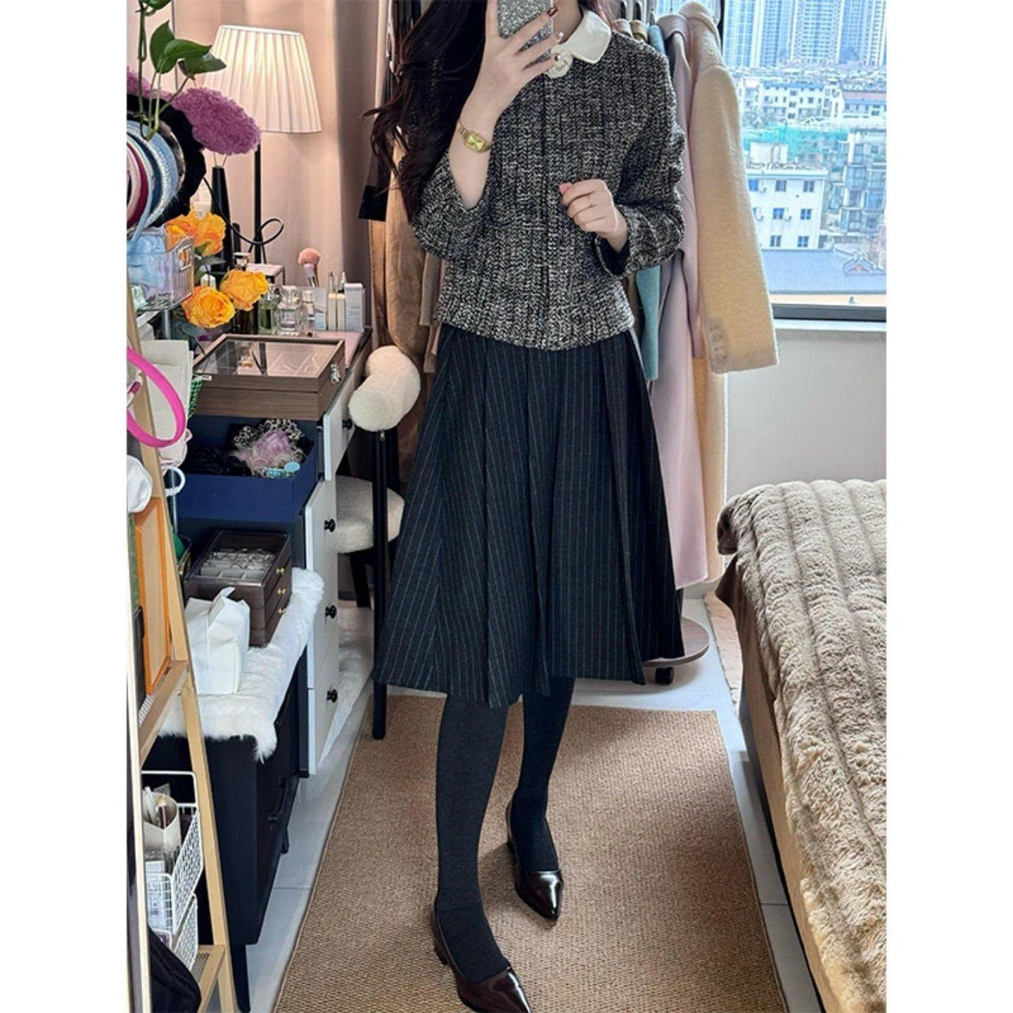首页> 女装> 巨好看2026穿搭一整套富家千金粗花呢收腰外套高腰显瘦百褶半身裙