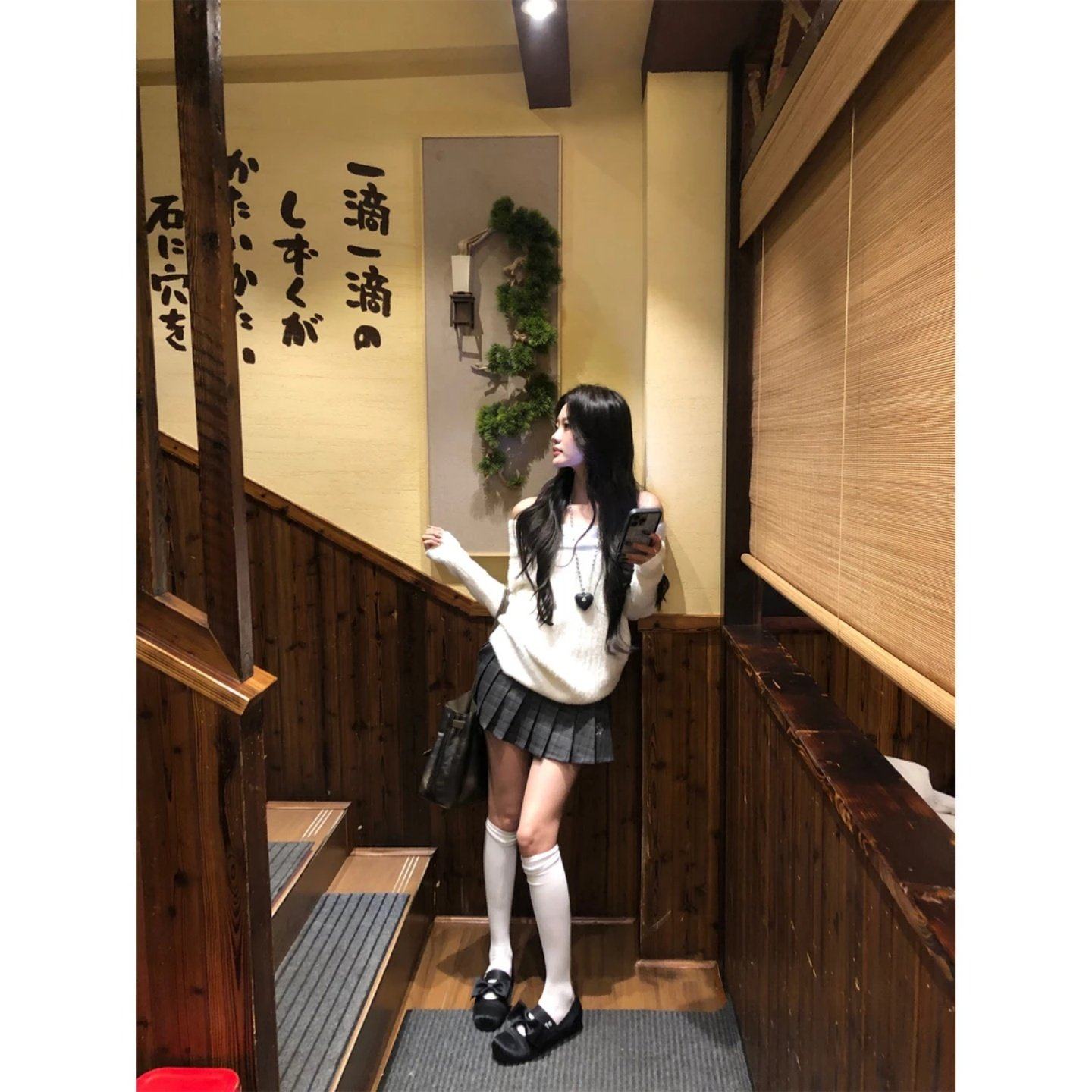 首页> 女装> 巨好看2026穿搭一整套纯欲风一字肩针织毛衣显瘦格纹低腰百褶裙