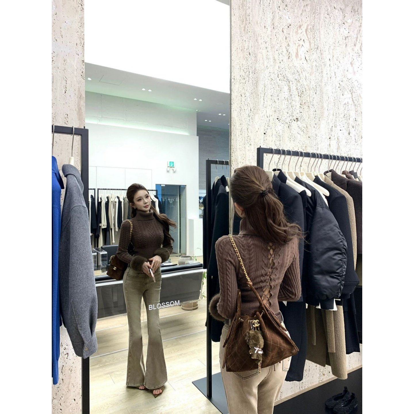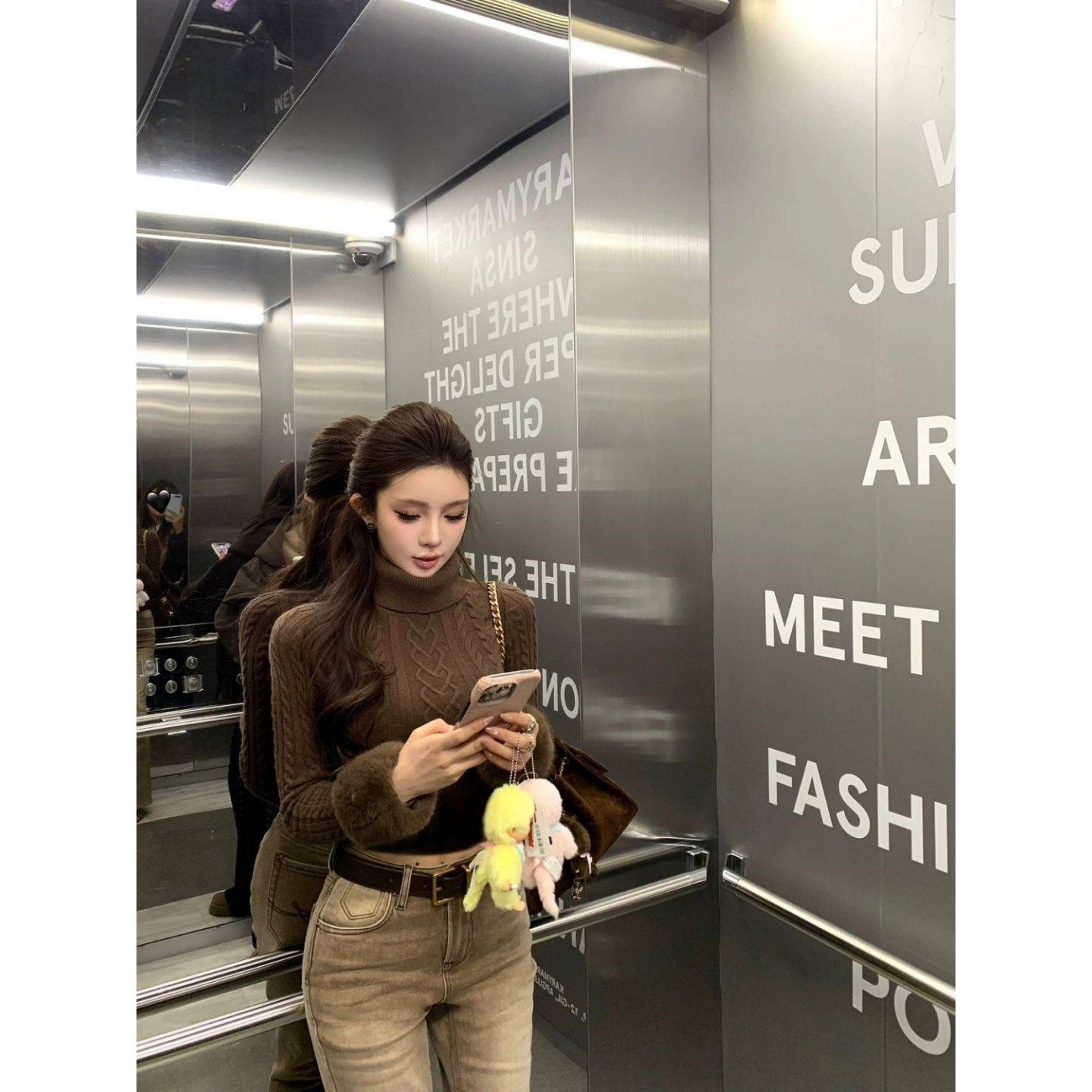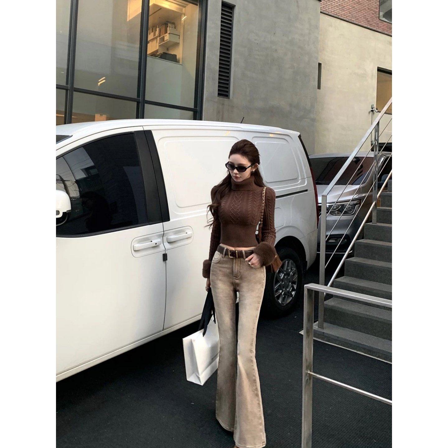 首页> 女装> 巨好看2026穿搭一整套辣妹风高领短款针织衫毛衣显瘦微喇长裤子